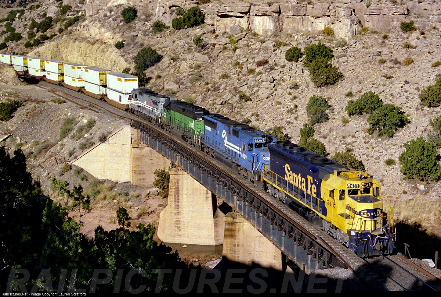 RailPictures.Net Photo: ATSF 5437 Atchison, Topeka & Santa Fe (ATSF) EMD SD45 at Abo Canyon, New Mexico by Lauren Scrafford