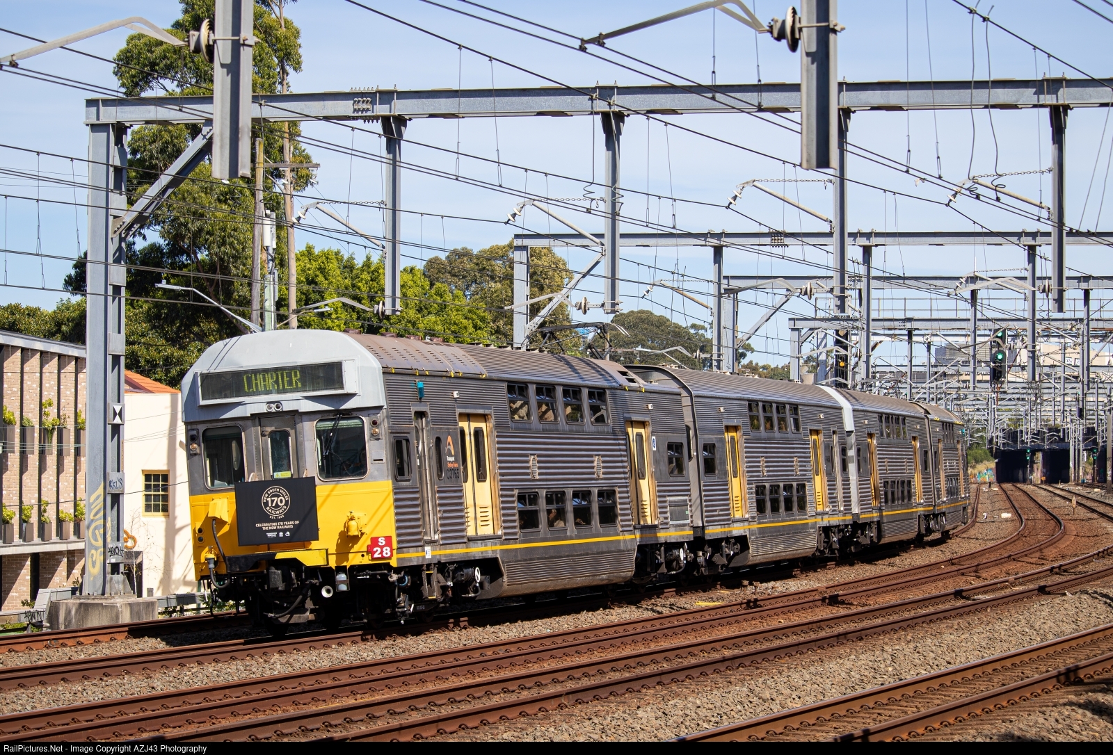 | Heritage set S28 rounds the bend into Summer Hill on its trip to Lavender Bay sidings via North Sydney as part of the 2025 Transport Heritage Expo, operated by Historic Electric Traction. |