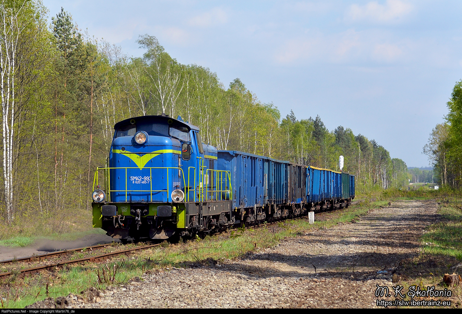 | The diesel locomotive SM42-993 hauling a freight train from Dabrowa Gornicza Zabkowice to Bedzin Lagisza. |