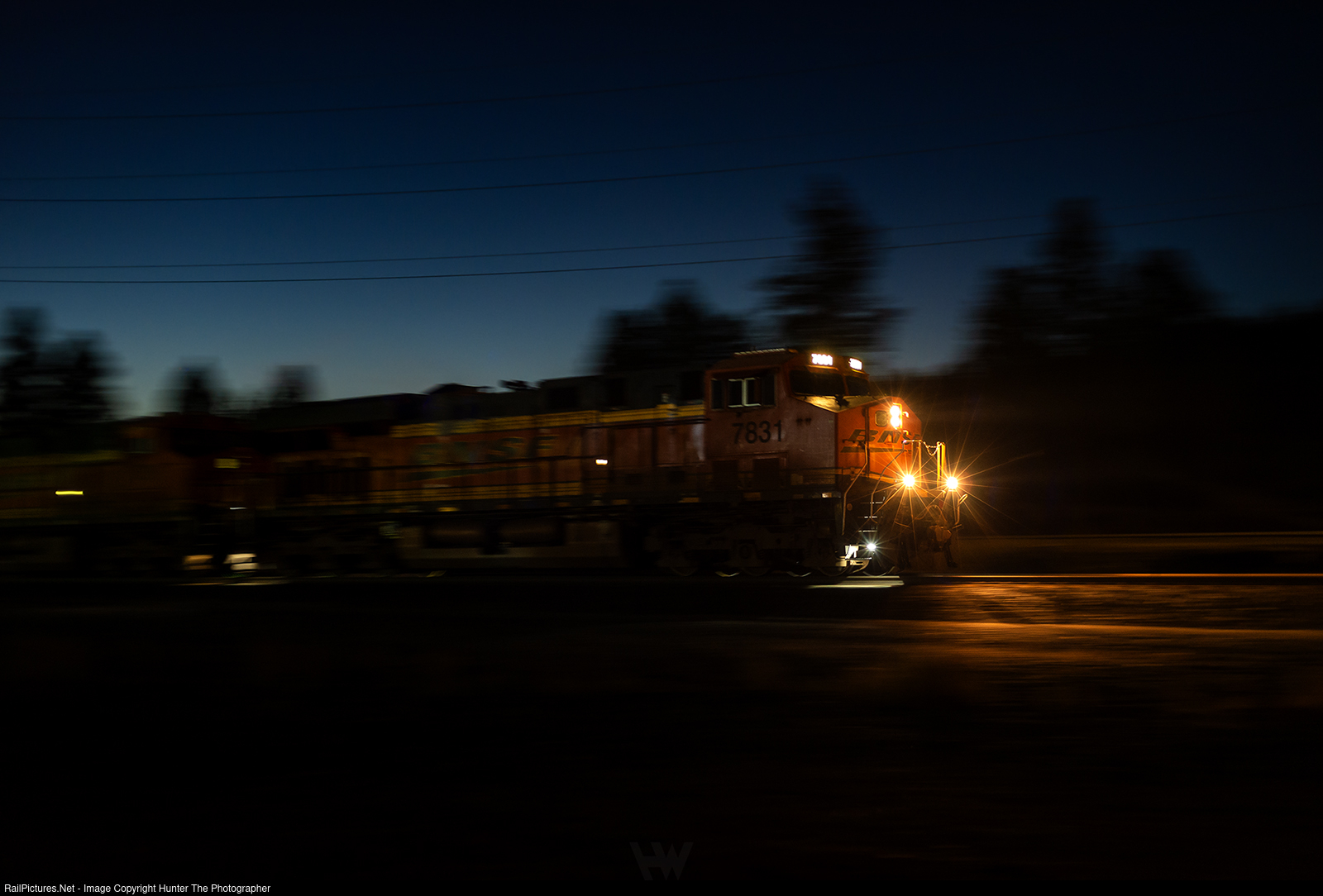 Cruising Into The Night | Night sets in over the community of Otis Orchards, WA where an eastbound intermodal train heads towards its next crew change point of Hauser Yard, just over the state line in Idaho, on a cool and clear Tuesday, October 7, 2025 evening.