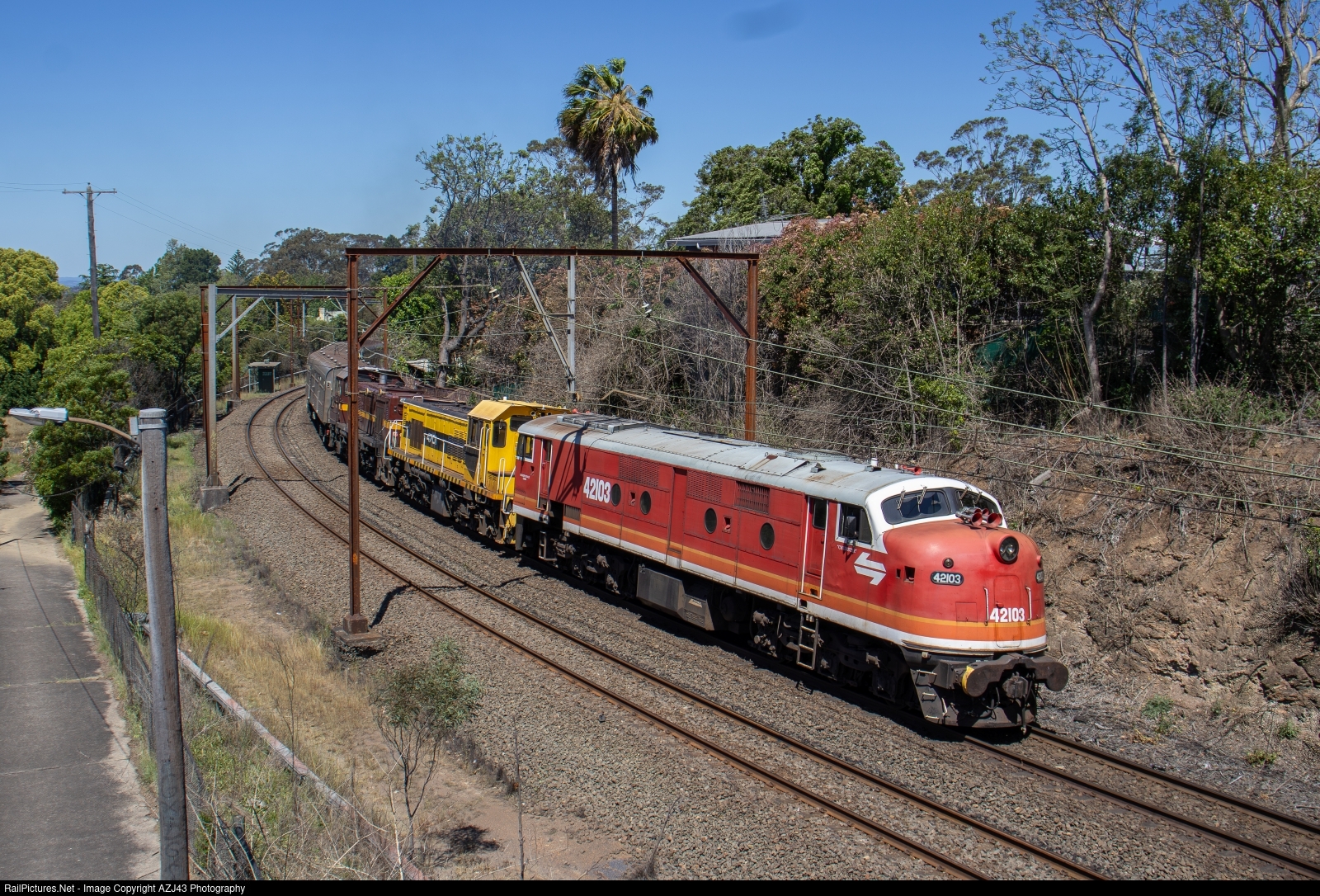 | Vintage Rail Journey's "Golden West" railtour is hauled by ECHR (3801 Ltd)'s 42103 and Lachlan Valley Railway's 4701 and 4702 into Springwood. |