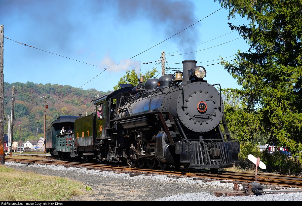 East Broad Top narrow-gauge Mike #16 pulls out onto the wye at Rockhill yards after completing it's southbound run. This leg of the wye is both dual-gauged and electrified, since the Rockhill Trolley Museum uses it to access their mainline, which is built on top of the old EBT Shade Gap Branch.