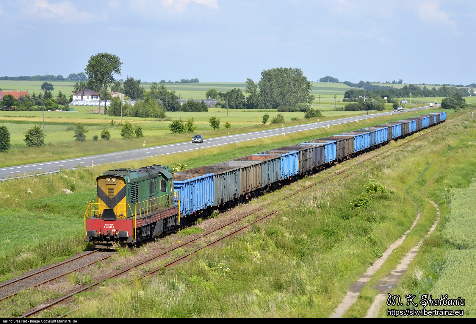 The diesel locomotive S200-528 hauling a freight train from Kedzierzyn Kozle to Pilawa Gorna.