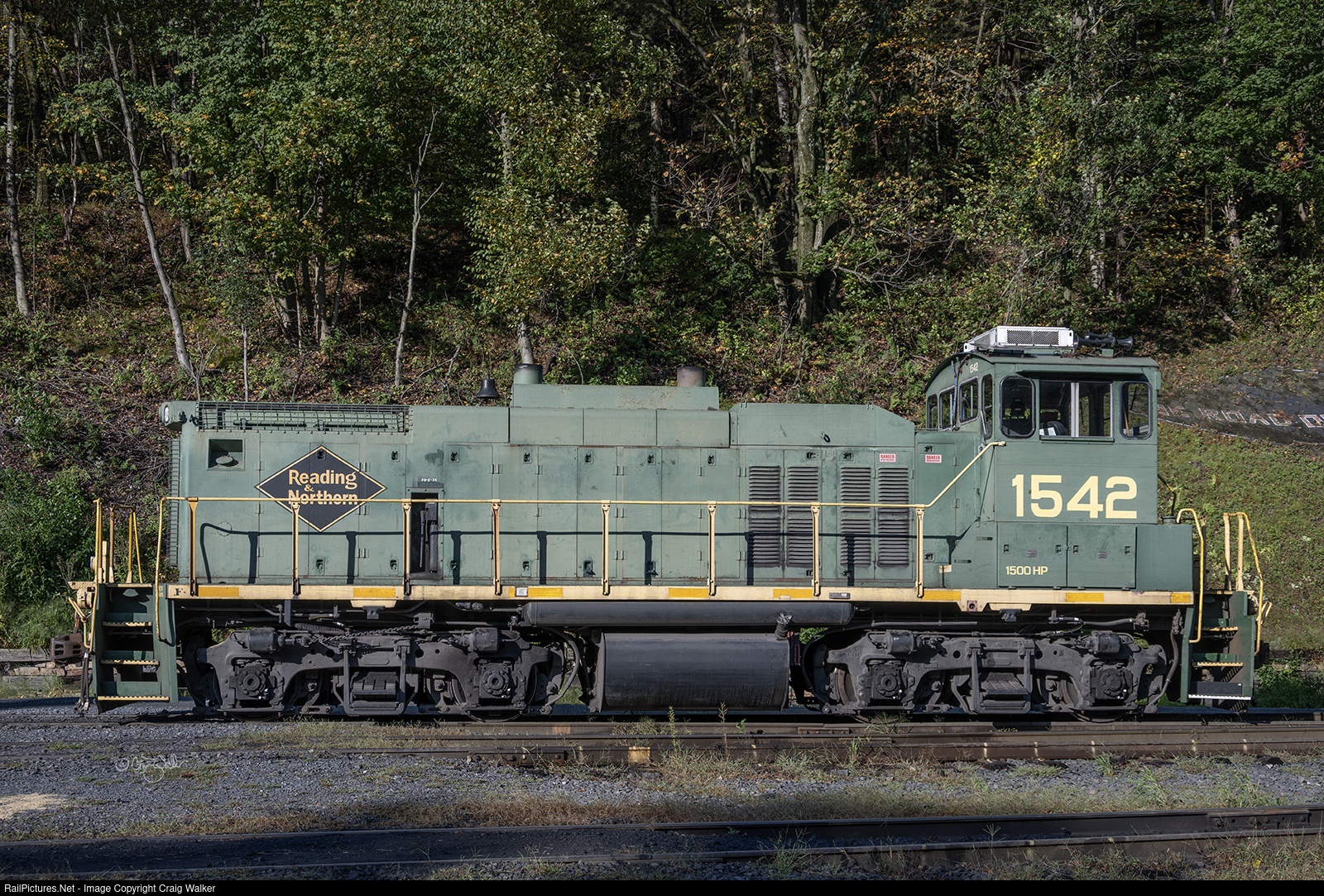This 1500-horsepower end-cab switcher was eventually sold by NS to the Reading Blue Mountain & Northern (commonly called just Reading & Northern), becoming RBMN 1542.
