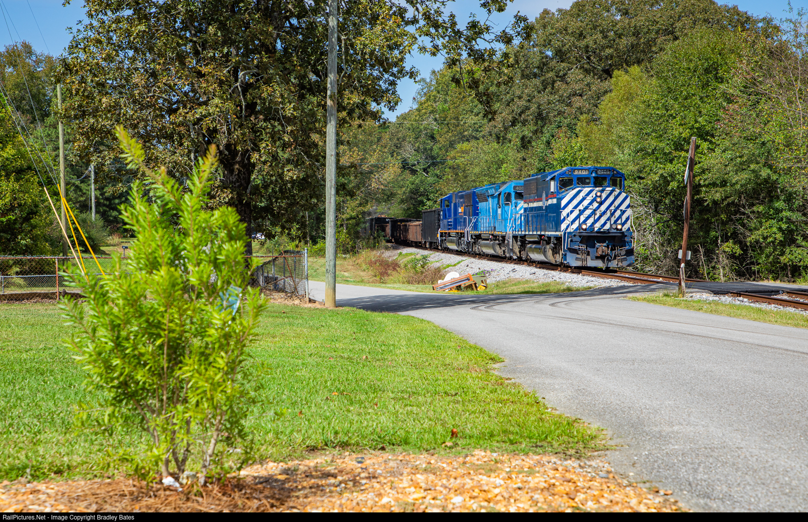 With 3 shades of blue in charge, ATN Train 102 heads south through Mountainboro, AL. as they work their way south to Gadsden.