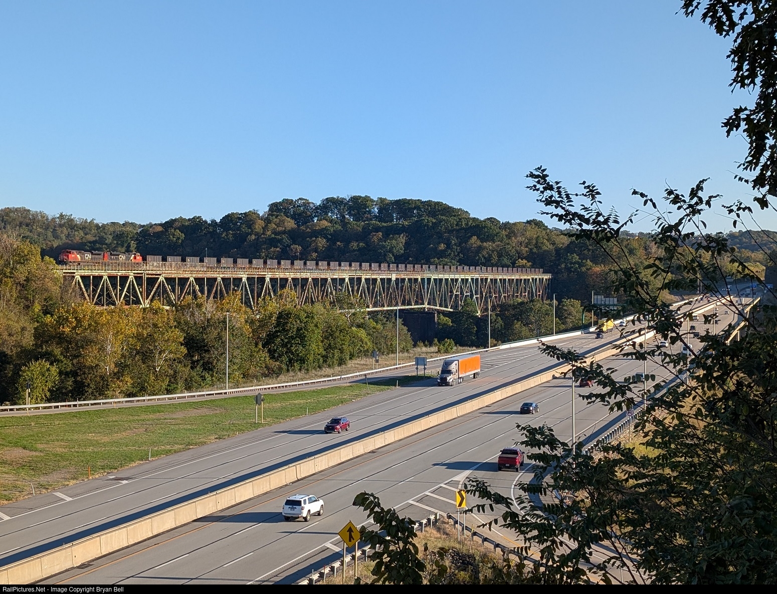 It's super uncommon to get lucky enough to randomly catch a train crossing the Allegheny River Bridge on the former Bessemer & Lake Erie subdivision. I wish it was orange locomotives but I will take it!