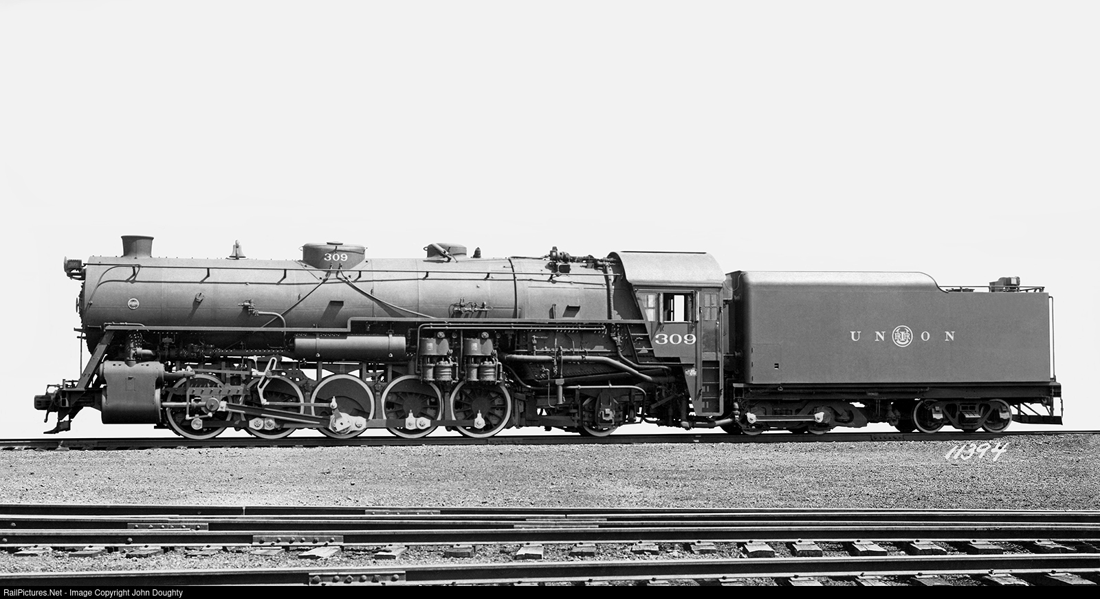 My great, great uncle Robert F. McKee, Sr., was a design engineer at Baldwin and he would give my father different Baldwin Locomotive Works builder's cards when my father would visit him in Collingswood, New Jersey. This 0-10-2 steam locomotive, number 309, was built for the Union Railroad Company. According to the specifications listed on the back of the builder's card this engine had a total weight of 642,870 lbs., and a tractive force of 90,900 lbs. This Baldwin Locomotive Works builders photo card is from the John R. Doughty collection.