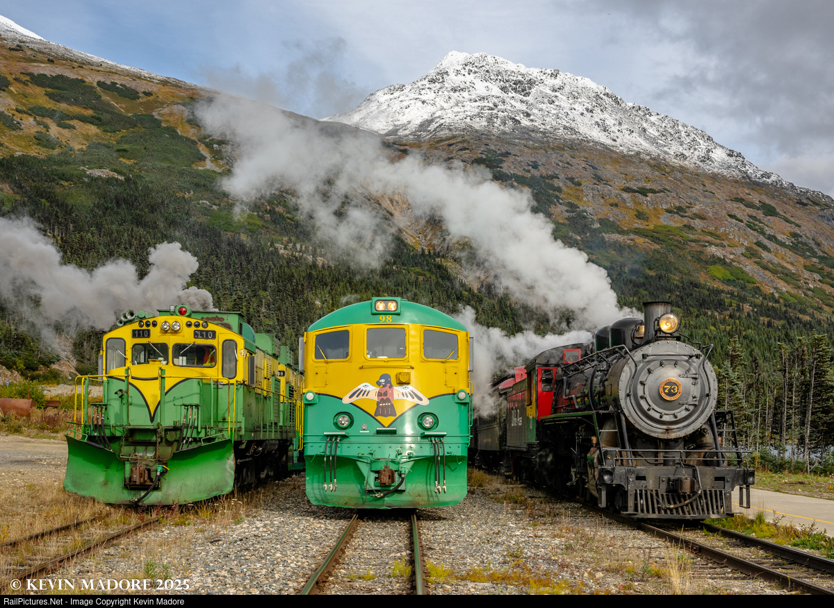 This image was captured during a September 2025 photo shoot on the White Pass & Yukon Route, which featured Baldwin Mikado #73, the last remaining steamer on the line.