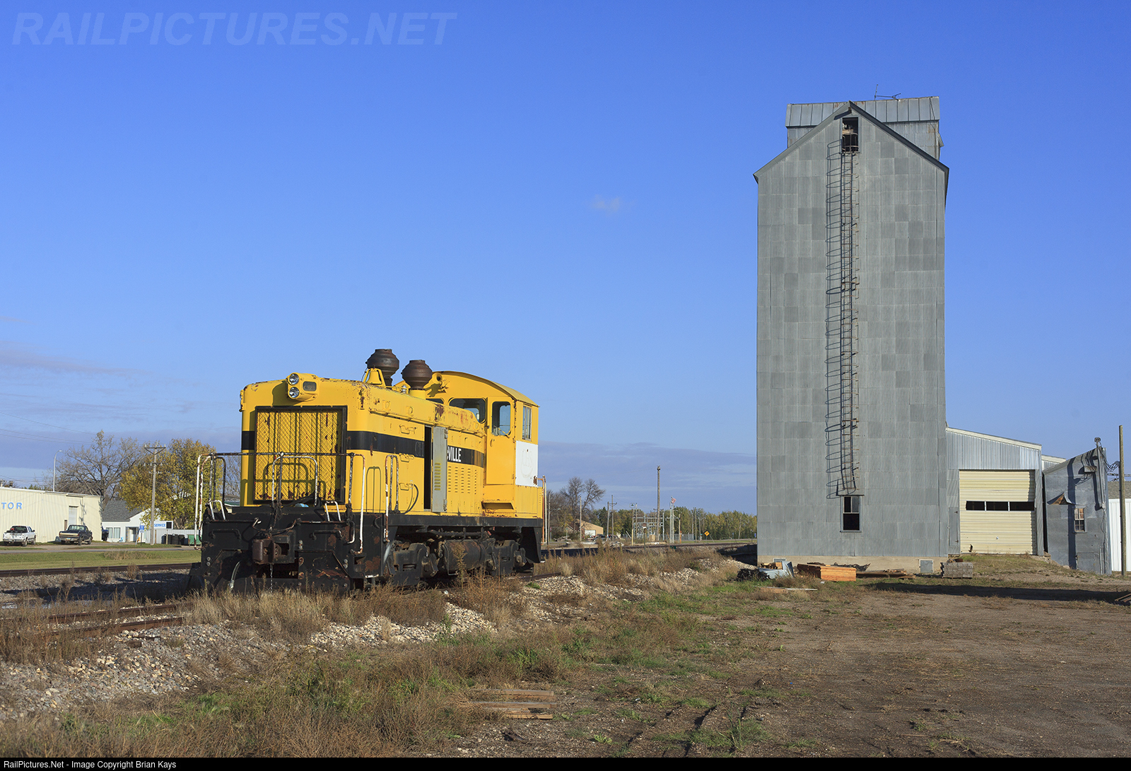 The resident switcher in McVille, North Dakota shines brightly in the afternoon sunlight along the lightly-used BNSF Warwick Subdivision branch line. The appearance of the railhead gave evidence that trains have not traveled this far northwest along the railroad in some time.