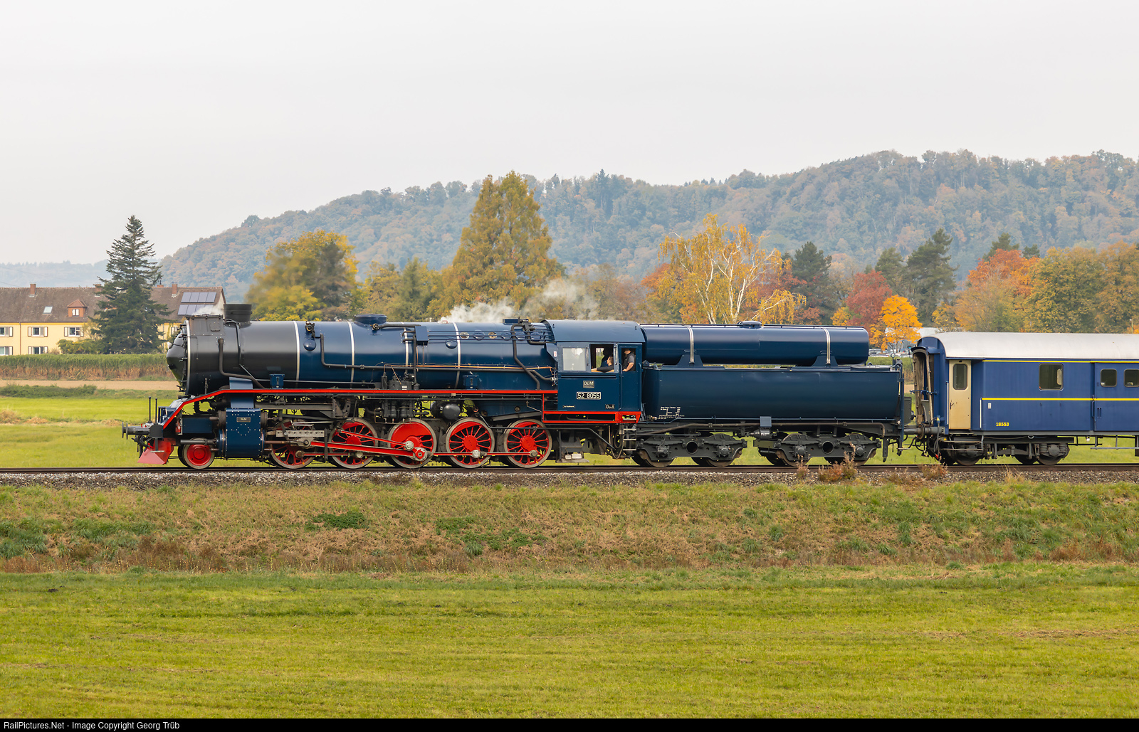| The former German 2-10-0 freight train steam locomotive 52 # 8055 from Dampflokomotiv- und Maschinenfabrik (DLM) with light oil firing was severely damaged in January 2023 during a fire at the locomotive depot in Schaffhausen. On that day, it was making its first trips after being put back into service on the Etzwilen-Singen museum railway. The locmotive pulls the morning train from Singen am Hohentwiel to Etzwilen, between Rielasingen and Ramsen, near the border Germany/Switzerland. This single track former SBB line was never electrified and is now owned by the foundation for the preservation of the museum railway Etzwilen-Singen, trains are operated by Verein zur Erhaltung der Bahnlinie Etzwilen – Singen (VES). |