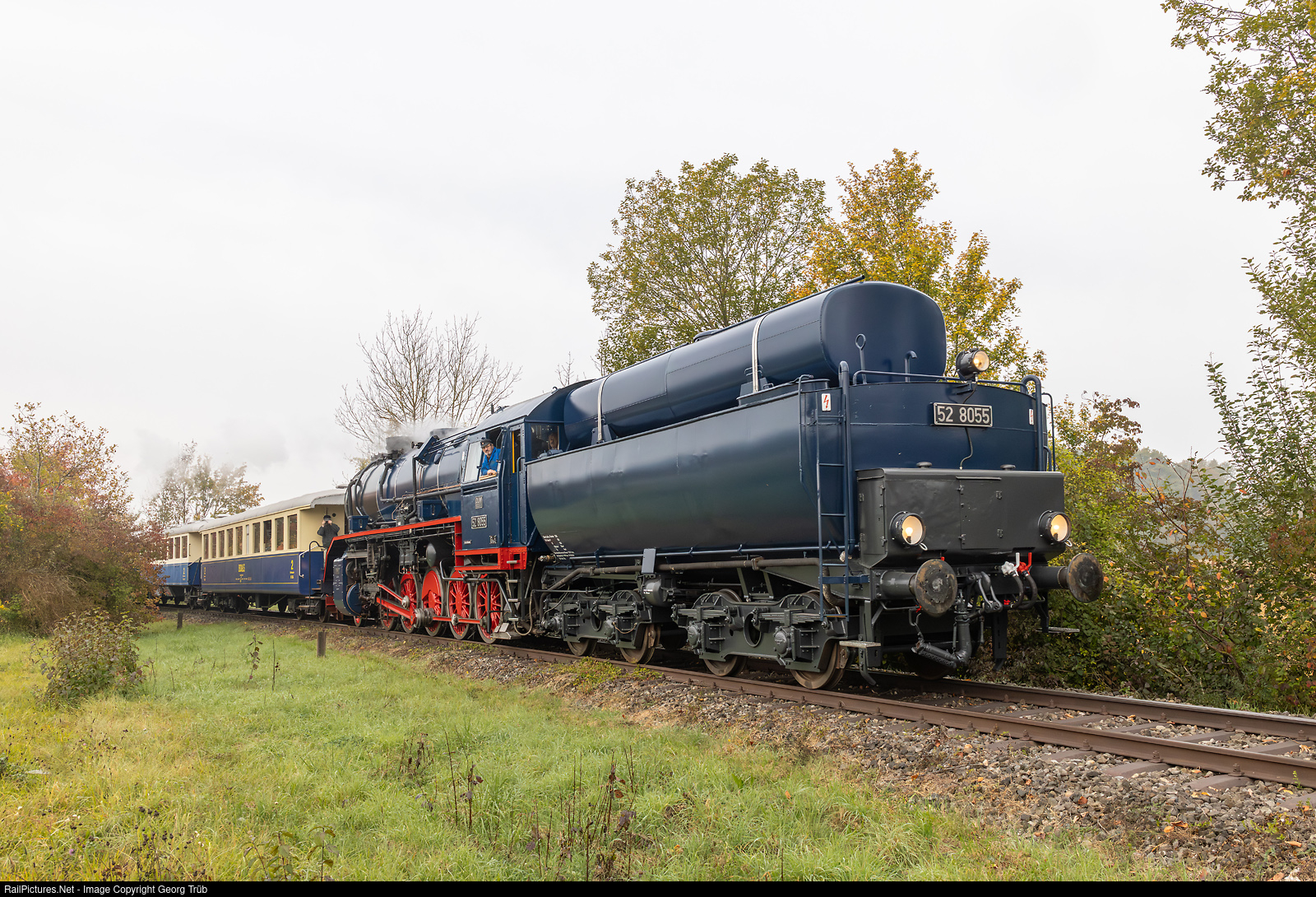 | The former German 2-10-0 freight train steam locomotive 52 # 8055 from Dampflokomotiv- und Maschinenfabrik (DLM) with light oil firing was severely damaged in January 2023 during a fire at the locomotive depot in Schaffhausen. On that day, it was making its first trips after being put back into service on the Etzwilen-Singen museum railway. The locomotive is running tender first between Etzwilen and the bridge over the Rhine to Hemishofen - Singen am Hohentwiel/Germany. |