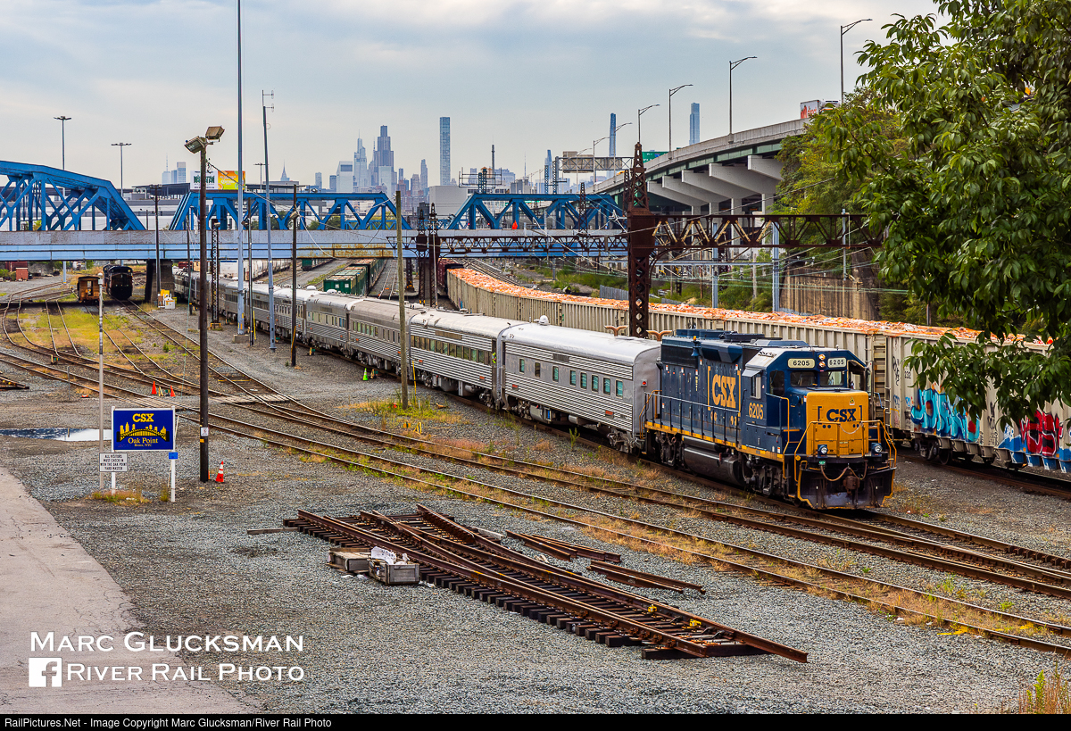 BNSF Office Car Special From Long Island To The Bronx. On Monday, September 29, 2025, the Burlington Northern Santa Fe (BNSF) Office Car Special was brought from the Long Island Rail Road Garden City–Mitchel Field Secondary in Garden City, New York to CSX Oak Point in the Bronx, New York. It was determined that the cars had presented with clearance issues on MTA Metro-North Railroad, and may have hit the third rail had it continued, so the route was changed and the cars were modified to rectify the situation. This highly unusual move is to bring the train to Long Island Railroad (LIRR) to serve as the railroad's base of operations for business during the upcoming Ryder Cup PGA competition at Black Course at Bethpage State Park. The 14-car train was parked while on Long Island, and not operated prior to the end of the event. Long Island Railroad handed the train off to CSX at the New York & Atlantic Railway Fresh Pond Yard. Afterwards, it was planned for Amtrak to take it in the Bronx, but mechanical problems developed with the Amtrak locomotives, and the train was tied down for the night. The train is seen passing through the CSX Oak Point Yard in the Bronx, New York with the Manhattan skyline in the background.