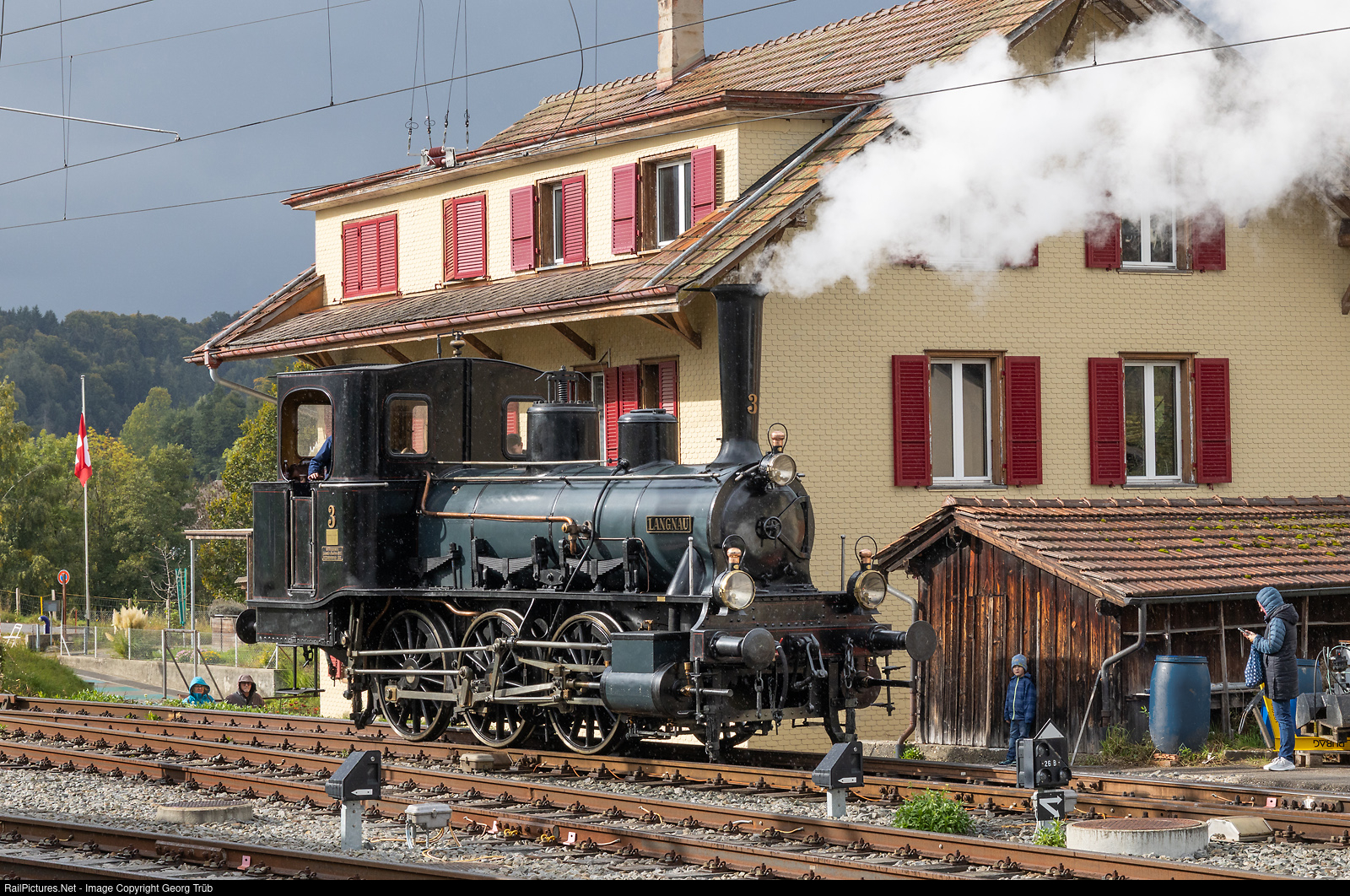 During the Huttwil Steam Days, the oldest operational steam locomotive built by SLM in Winterthur for adhesion operation was used for cab rides. The Ed 3/3 # 3 LANGNAU was built in 1881 for the Emmental Railway, now belongs to the collection of the Swiss Museum of Transport in Lucerne (VHS) and is on loan to the Bern Steam Railway Association in Konolfingen. In spring 2025, after a very long period of storage (since 1970), the locomotive was made operational again by three enthusiastic young experts from the Bern Steam Railway and was operated for the first time on May 17/18, 2025, during the 150th anniversary of the Emmental Railway. Marco is in the driver's cab, having put the locomotive back into service together with Tim and Michael.