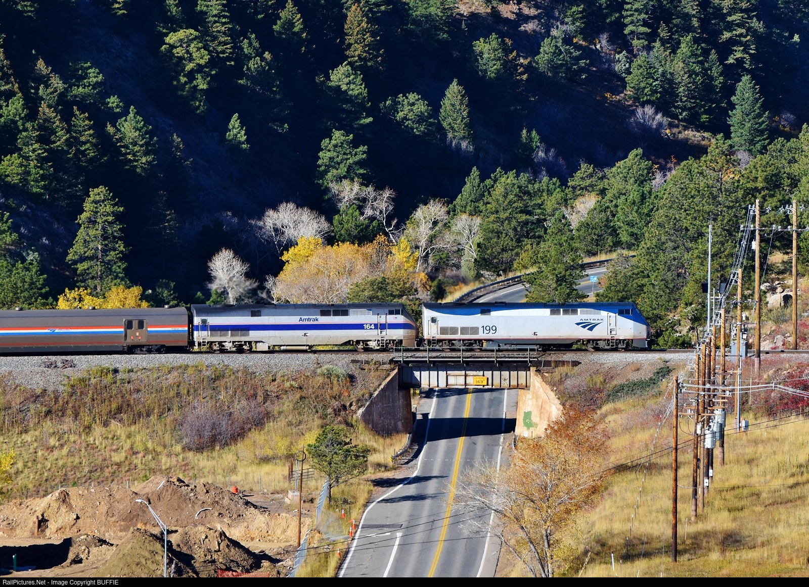 RailPictures.Net Photo: AMTK 199 Amtrak GE P42DC at Coal Creek Canyon, Colorado by BUFFIE