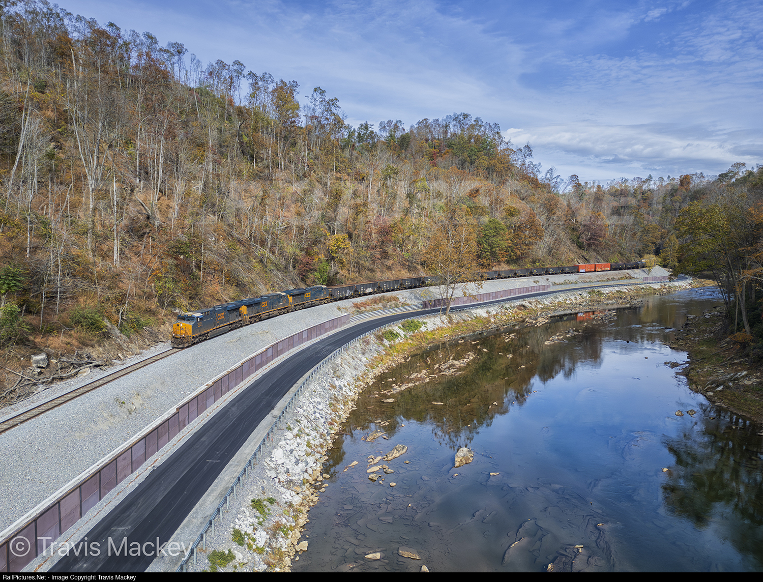CSX M652 running along the Toe River at Relief as it approaches Huntdale