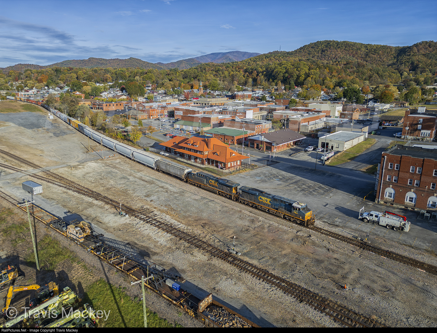 CSX M653 pulling past the Clinchfield Passenger Depot in Erwin