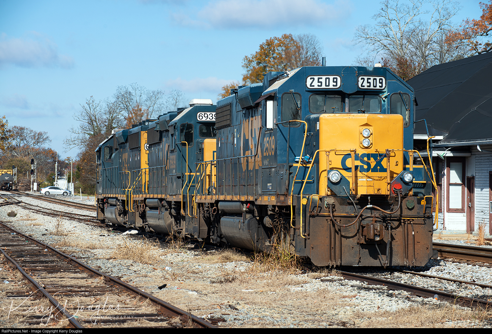 | The trio of Geeps that is assigned to CSX L447-27 "Tullahoma Turn" is running on idle on the house track across from the depot at Tullahoma, TN. With it being post Thanksgiving, CSX has place a lot of their trains on limited schedule mainly local jobs to give part of their employees the time off if you have that kind of seniority to work those kind of jobs plus majority of the customer that L447 service we're not in operation |