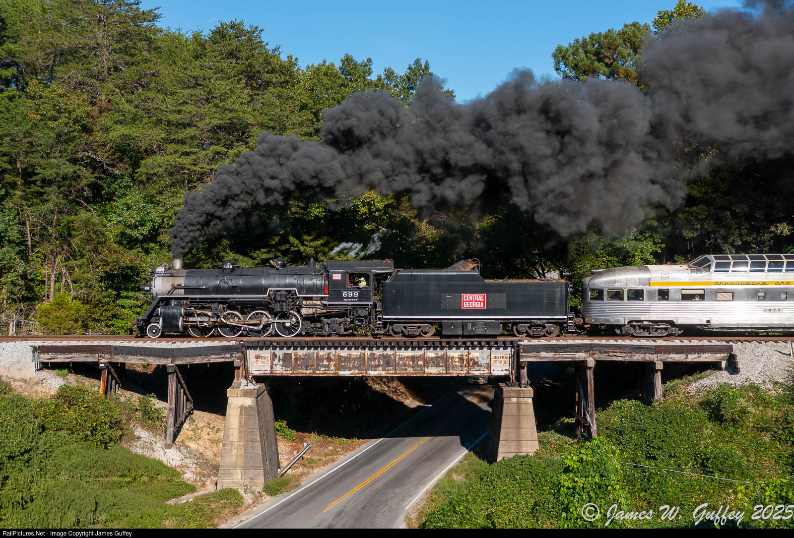 Tennessee Valley Railroad Museum's Central of Georgia themed event returns north, crossing the C of G lettered bridge at McFarland Gap.