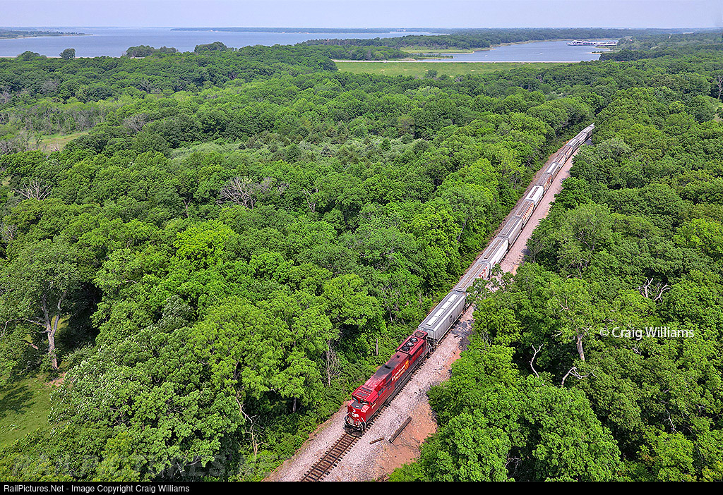 When the CP's Kansas City Sub gets past Moravia, the railroad really starts to become desolate as it twists and turns through the southern Iowa and northern Missouri countryside. Getting to places isn't easy and probably isn't photographed as much. I have in-laws that live near Mystic, so I explored this railroad more and more each year. Just outside Moravia is the area around Lake Rathbun. The railroad skirts around this area as they cross the Chariton River and Walnut Creek. Getting Rathbun Lake with the train is impossible without air, but some elevation shows just how big the lake is and how much of a tree tunnel it is too. 180 is in heavy dynamic as they work 40 miles south of Ottumwa. Nothing special, just different.