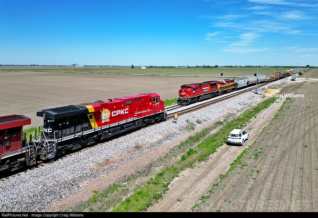 We work the CPKC KC Sub up from Braymer today on our way home. The traffic south of Ottumwa was decent today. 576, 180, 181, 260, 252, 356, and another NB, all during the daylight hours. Here, 252 heads into the siding at Sewal to meet a pair. We got our 1st new CPKC repaint leading this 181. Nice consists both ways for this meet. It is a cool piece of railroad you dont see alot of photos from, we will be back!