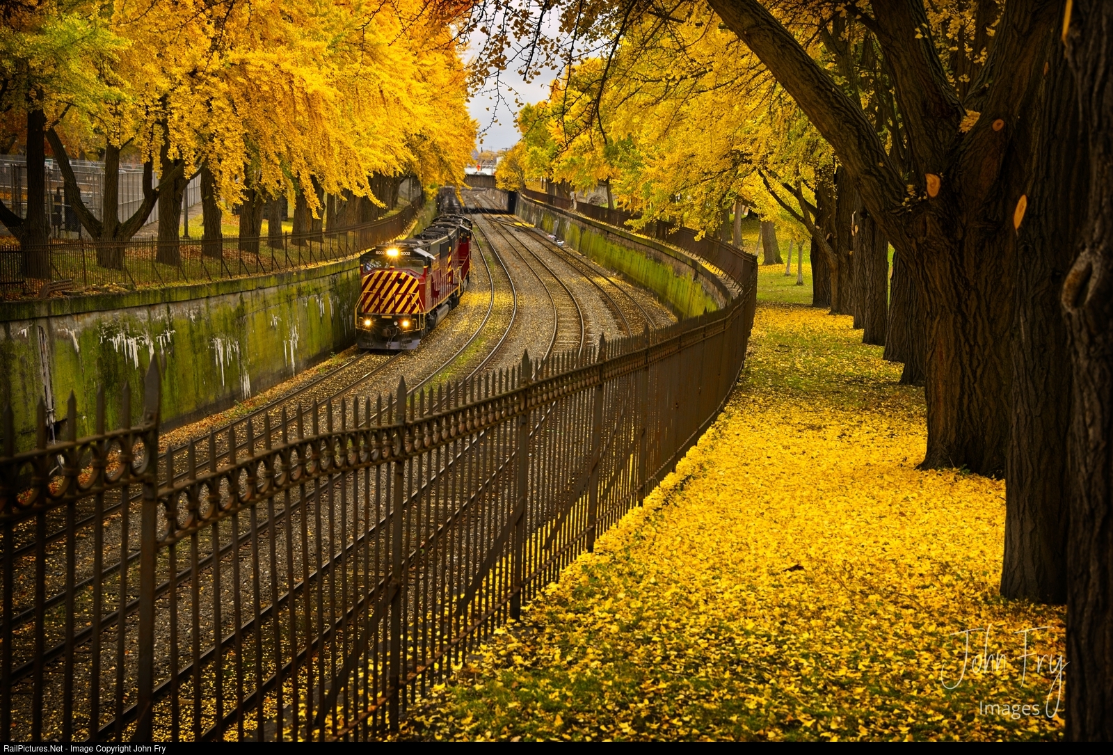 The daily Allegheny Valley Railroad turn passes through Allegheny Commons Park West, also known as "The Trench" in spectacular fall color on its way back to Glenwood. This turn interchanges with Norfolk Southern at Island Ave yard.