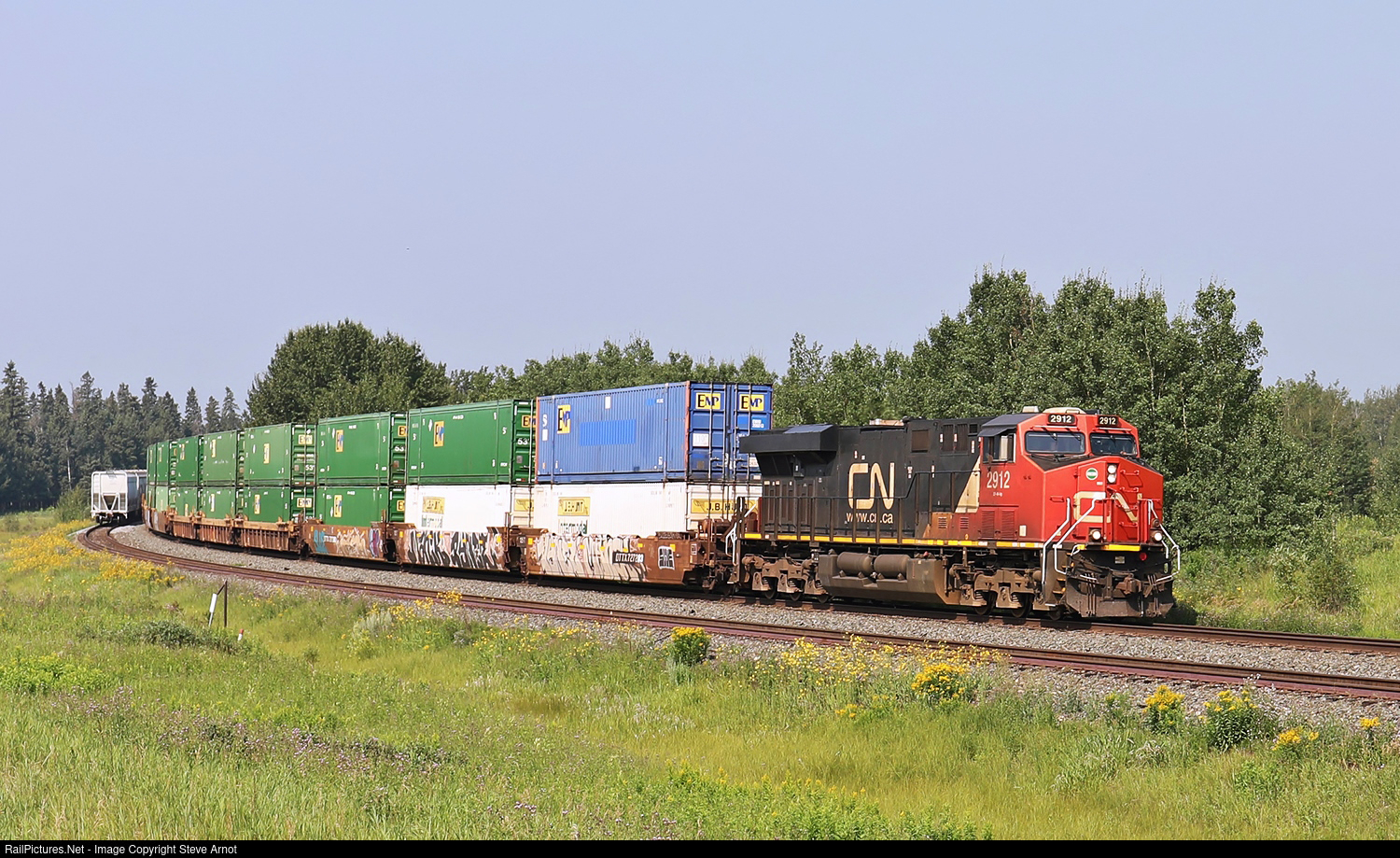 CN ES44AC 2912 leads an eastbound intermodal through Lindbrook.