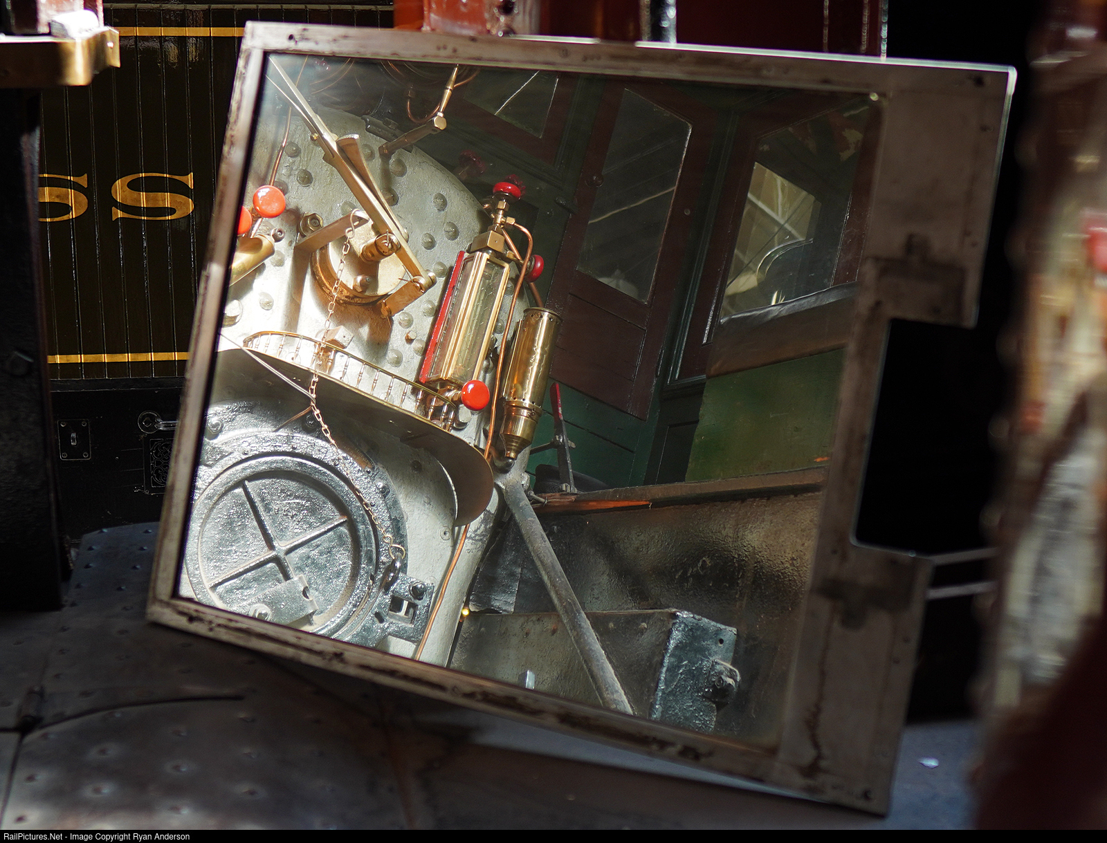 The cab of the St.P&P 1 "William Crooks" is not open for climbing aboard like some other exhibits in the LSRM so a mirror is strategically placed for a glimpse of the interior.