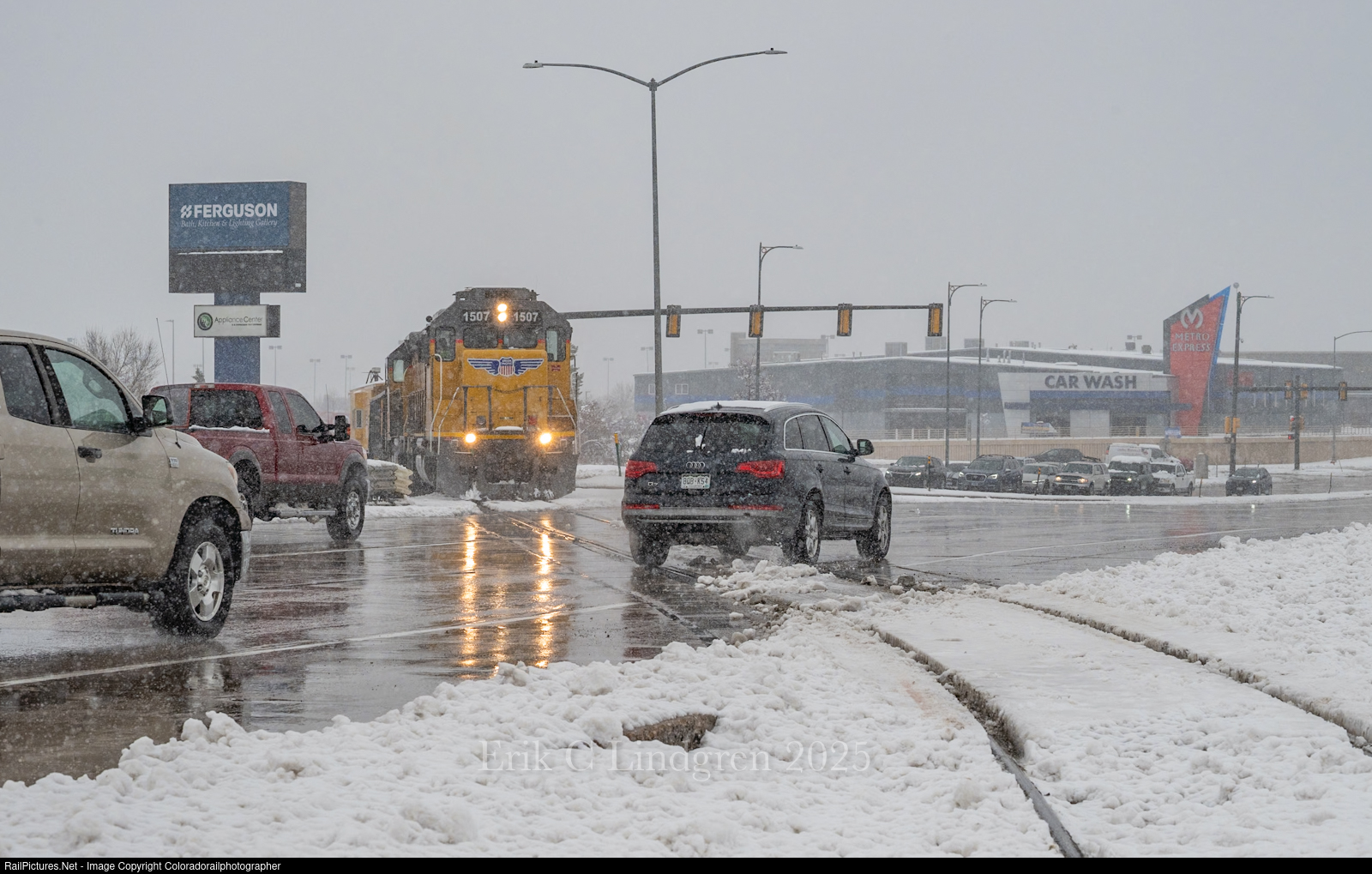 Winter storm only adds to the pressure of the crew of this local setting out cars in Littleton, CO on a very wintery day along South Santa Fe Drive. |
