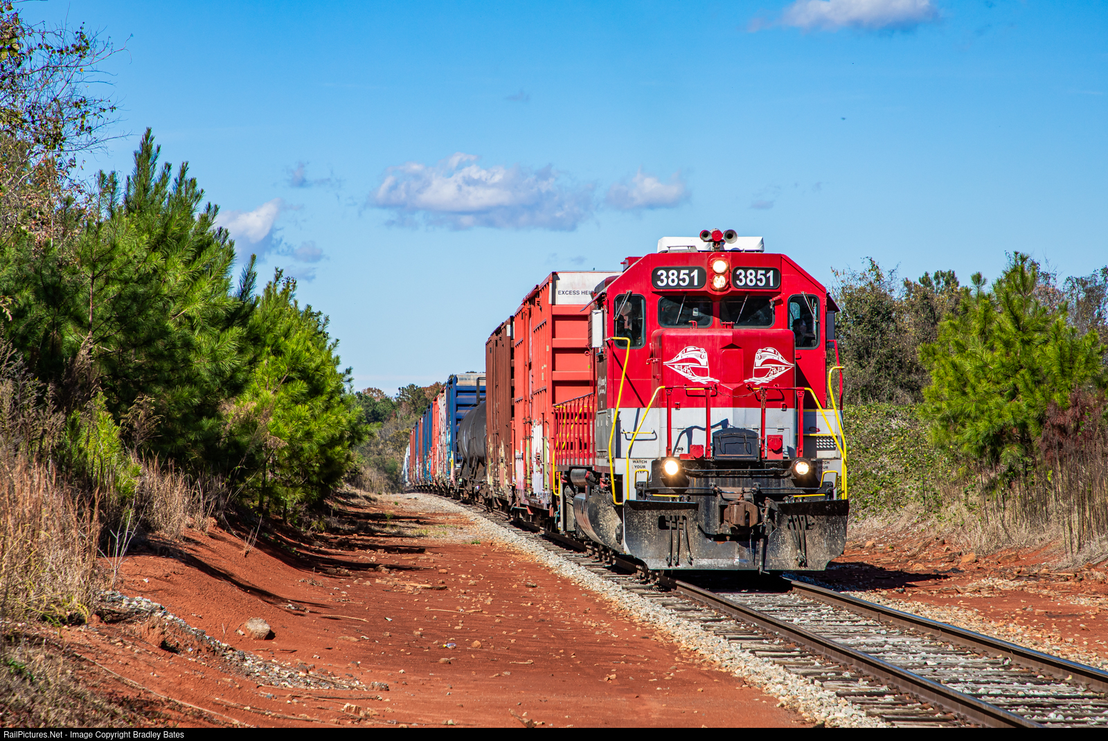 RJC GP38-2 #3851 pulls a cut of cars to be interchanged to Norfolk Southern at Childersburg, AL.