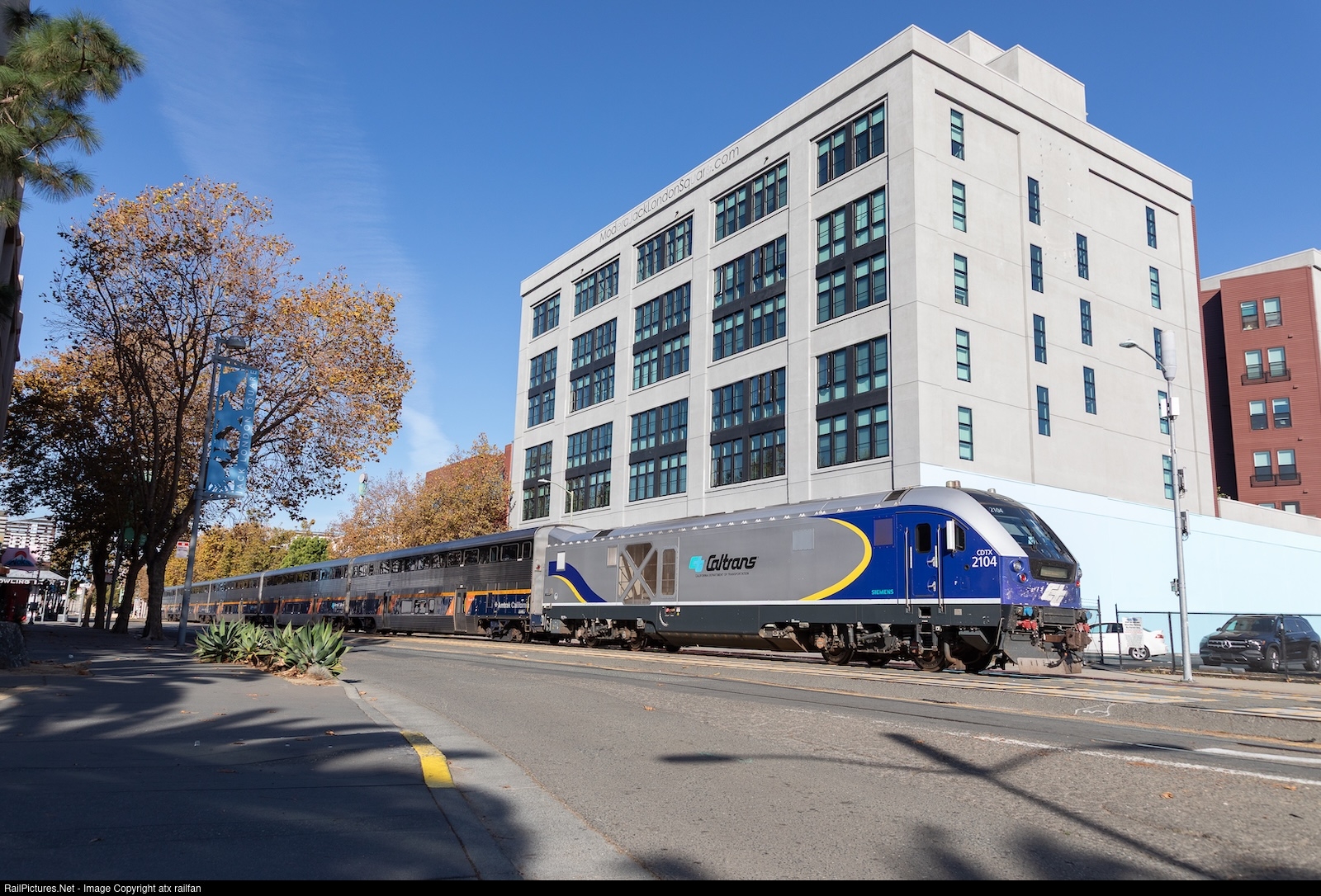A San Jose-bound Capitol Corridor hustles through Jack London Square.