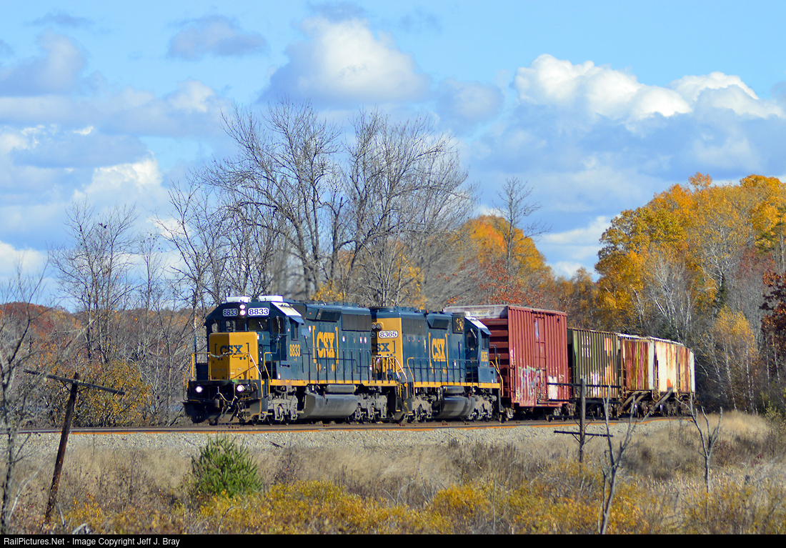 With dark clouds looming just out of sight to the West, CSX L071w was making good time through Etna, Maine in the early afternoon of October 25, 2025. Approaching Dixmont Road, we had just enough elevation at our roadside location to get above the trees.