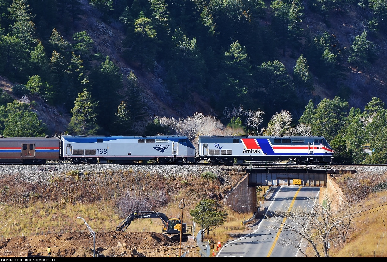 RailPictures.Net Photo: AMTK 160 Amtrak GE P42DC at Coal Creek Canyon, Colorado by BUFFIE