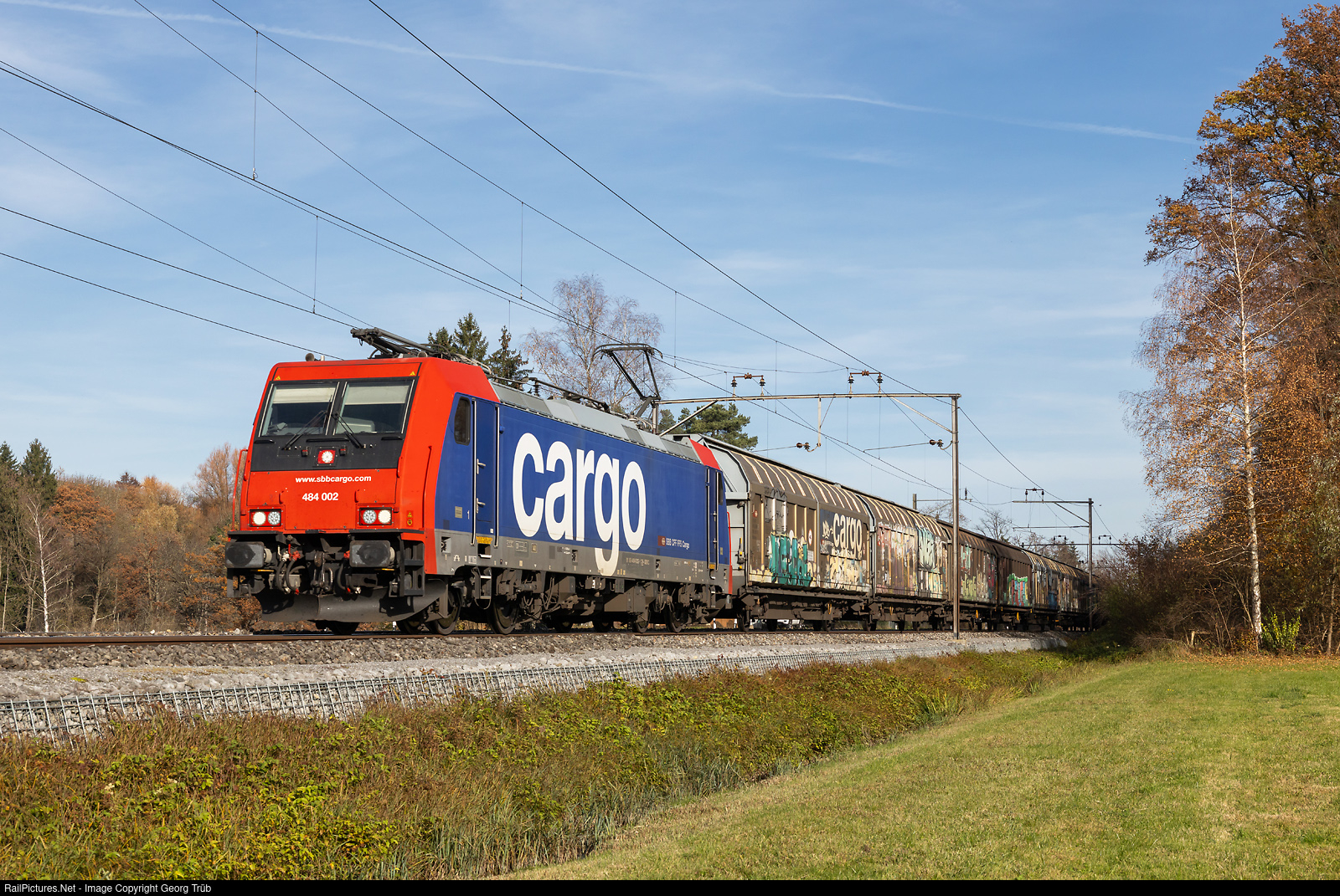 | Bombardier TRAXX F140 MS Re 484 # 002 of the SBB pulls the freight train 63180 from St.Margrethen via Romanshorn VL-Winterthur-Kloten-Regensdorf to the Limmattal shunting yard, between Erlen and Sulgen. |