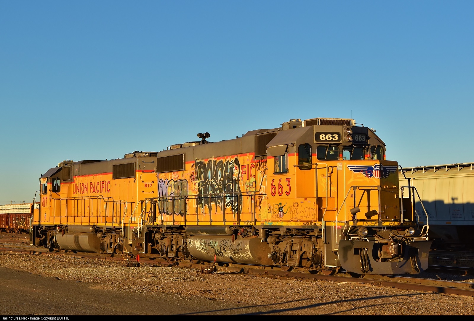 | It looks like UP 663 (GP38-2) has spent some time in California before moving to Denver, Colorado, where it works in the North Yard.