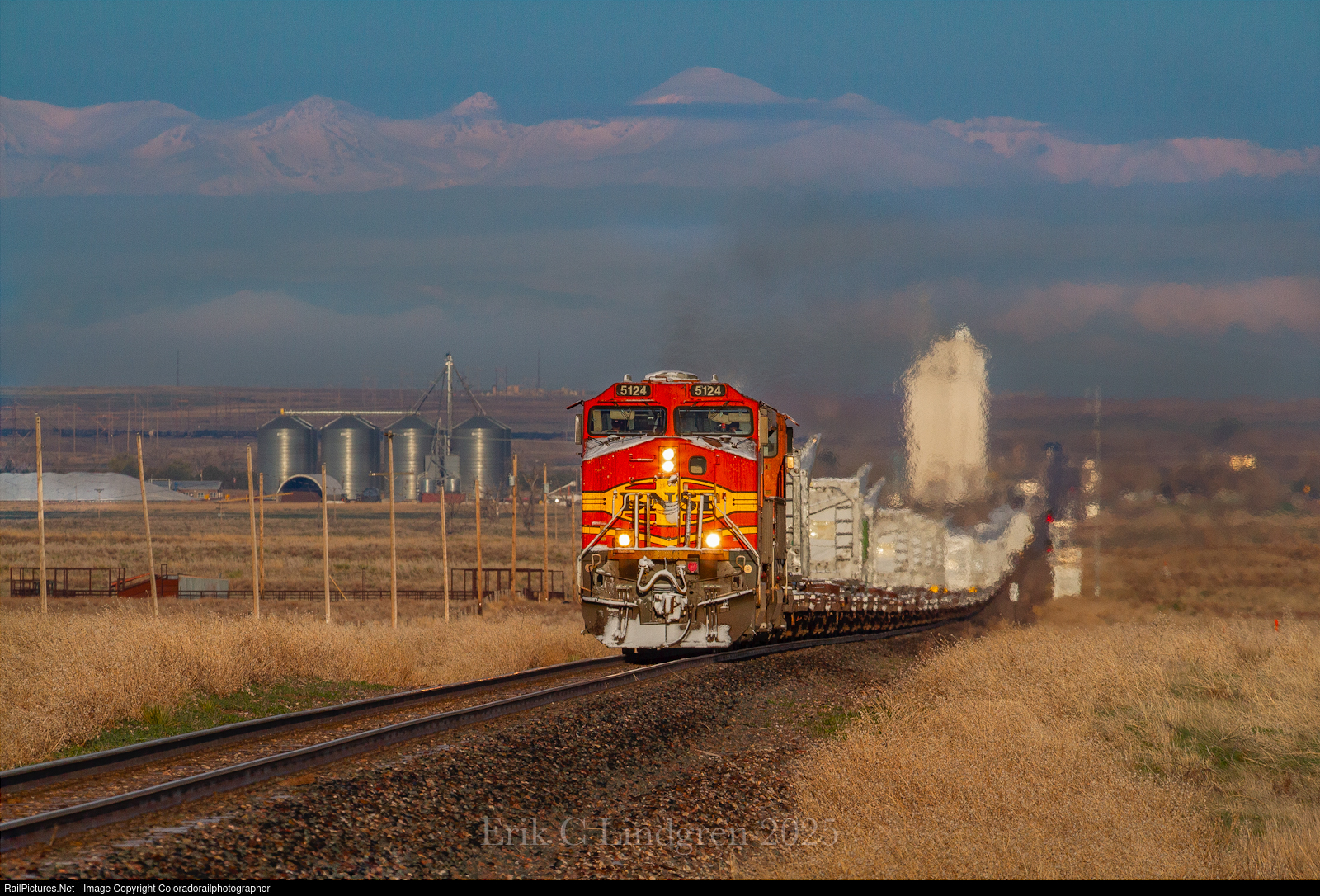 The Front Range owns the backdrop behind a fast moving eastbound on the High Plains. Next up, Fort Morgan. |