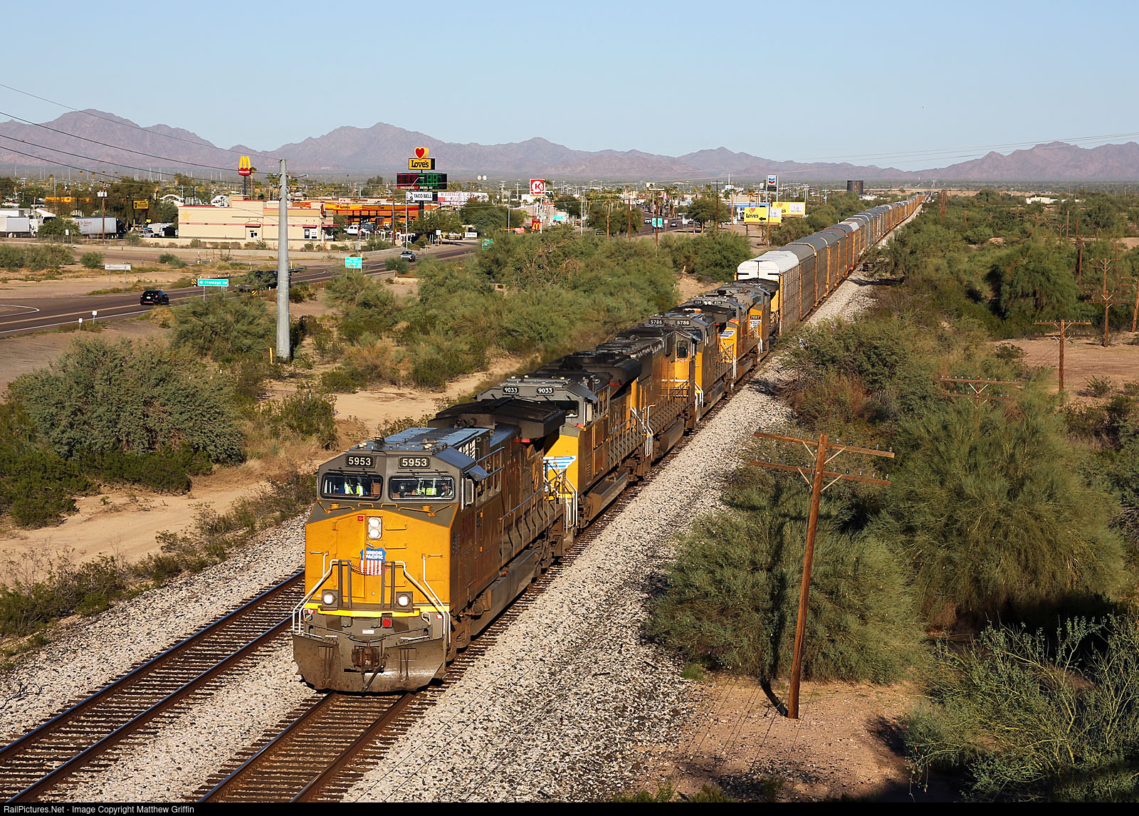 RailPictures.Net Photo: UP 5953 Union Pacific GE C44ACM at Gila Bend, Arizona by Matthew Griffin
