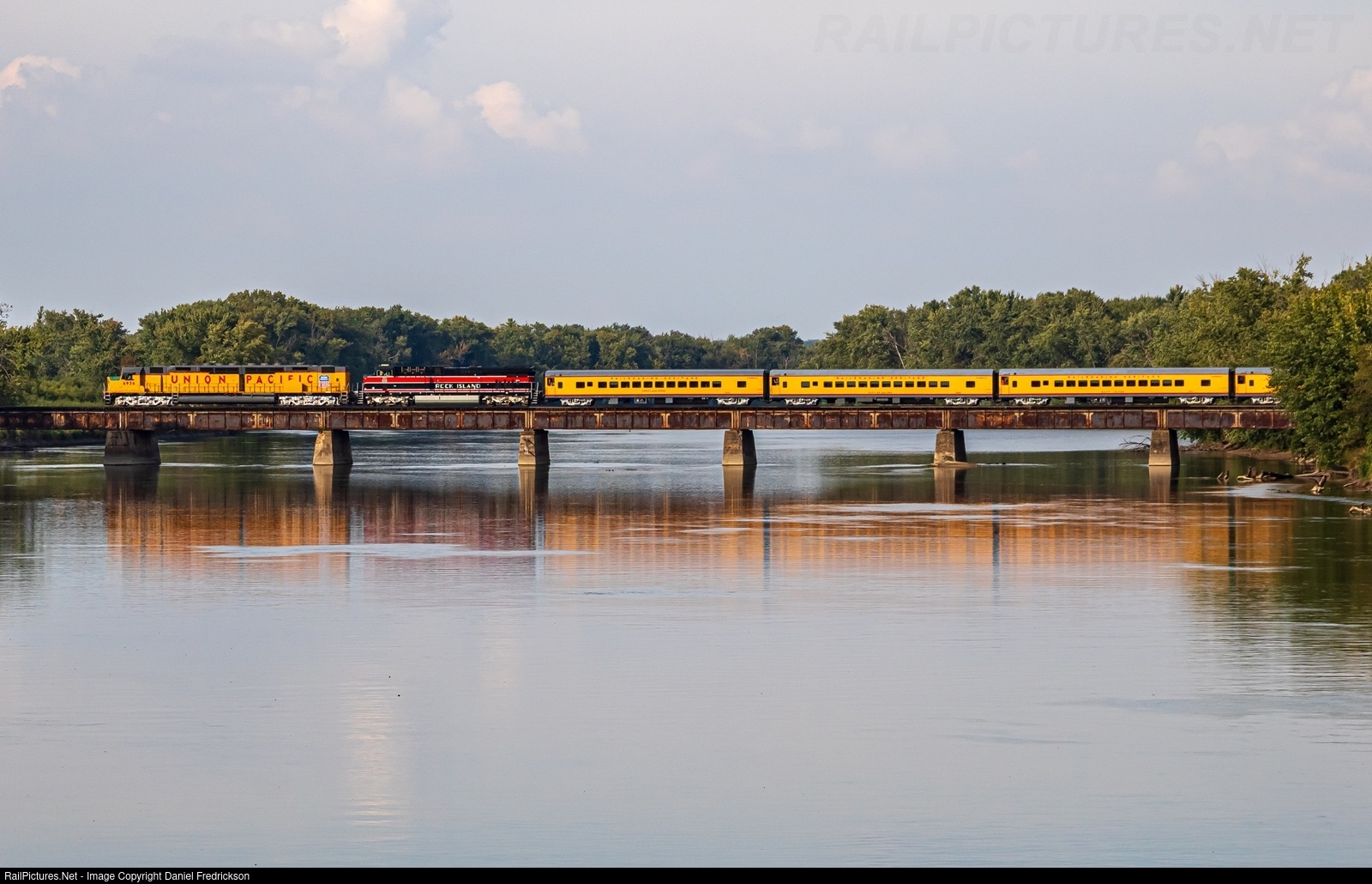 The Railroading Heritage of Midwest America organization operated two days of excursions with restored DDA40X "Centennial" locomotive #6936, with Iowa Interstate providing ES44AC #513 for backup. The trainset operated one round trip per day - west towards South Amana, IA on 9/20 and east to Bureau Junction, IL on 9/21, both trips originating in Silvis, IL. Here, the Bureau Junction trainset begins its final approach to Silvis, crossing the Rock River bridge in Colona.