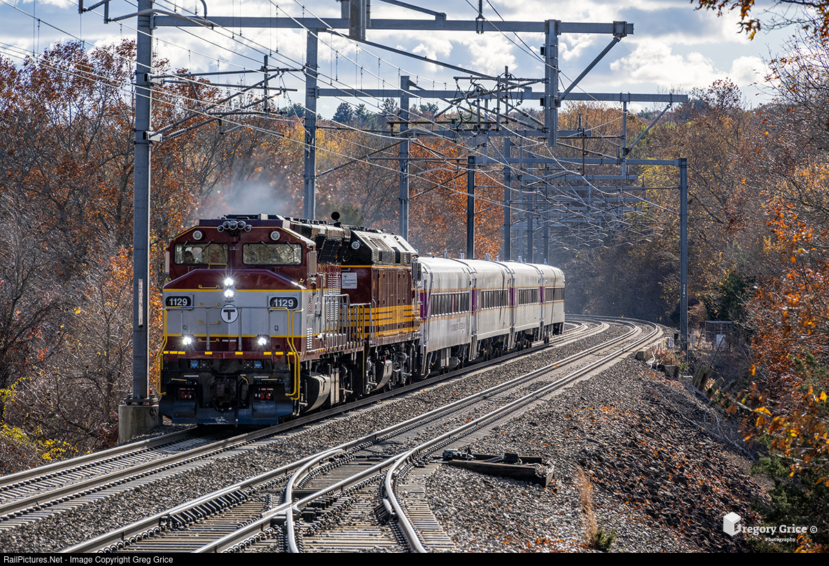 On the afternoon of November 14th, 2025, the MBTA/Keolis “Seaview Extra,” led by EMD GP40MC-3 MBTX 1129 in B&M “Cranberry” paint, passes the Gannon Chemical switch on Amtrak's Northeast Corridor in Warwick, Rhode Island. This special move marked the inaugural run of MBTA’s new Office Car Special consist, which features four overhauled MBB CTC/BTC-3 coaches, including “The Mayflower,” an observation car with a full glass end.