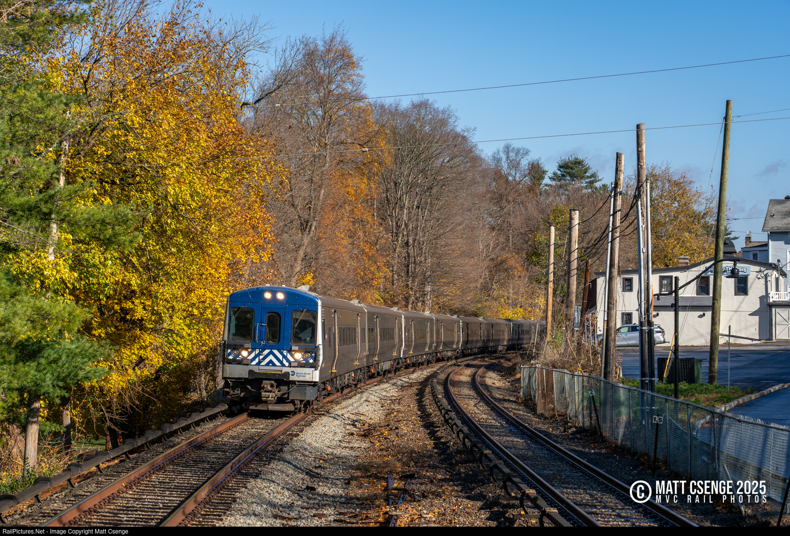 Metro-North Railroad (MNR) M7A car 4304 is the lead unit on southbound Harlem Line train 9618, seen approaching Hawthorne Station. The last remnants of fall foliage were still clinging to the trees on this early November day, despite being certainly past peak. |