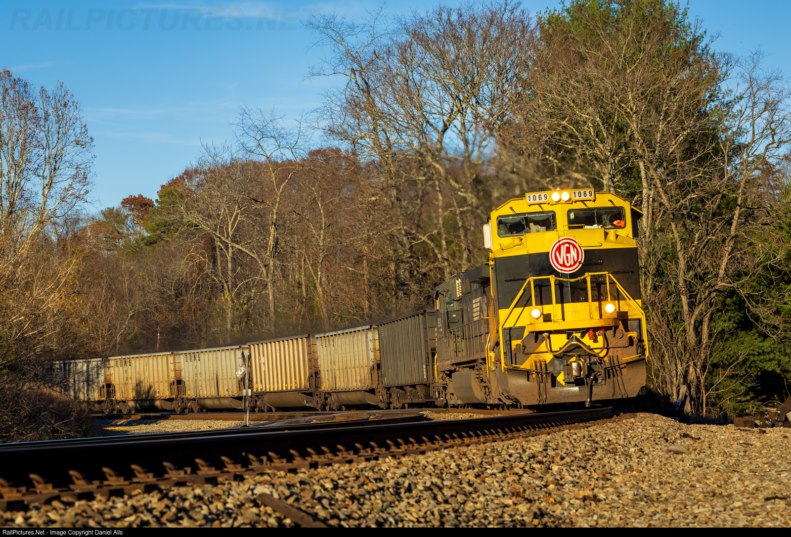| Manifest NS 127 leans into a curve in Wabun, VA with the Virginian in the lead. Coal loads dominate the beginning of the Manifest. |