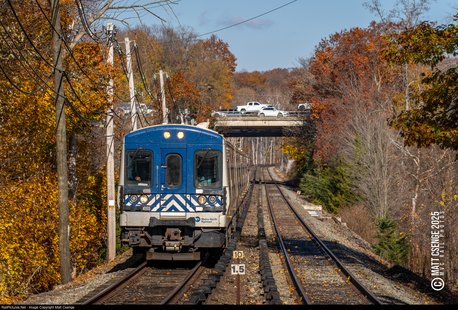 The last remnants of fall foliage are on display north of Katonah Station as Metro-North Railroad (MNR) M7A car 4126 leads Harlem Line train 9622 south towards Grand Central. |