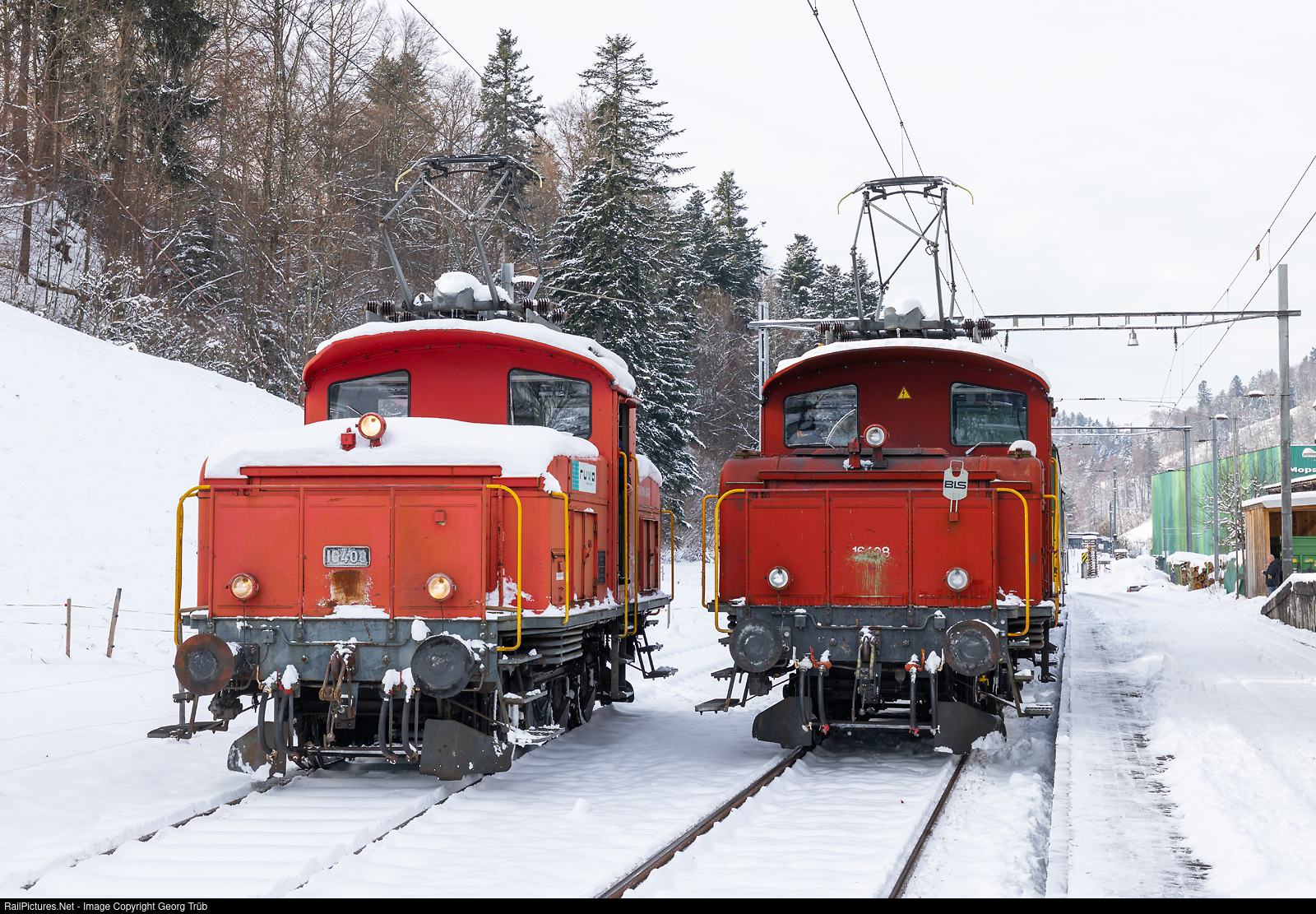 More than 10 years ago, the RUWA wire welding plant in Sumiswald took over the two Ee 3/3 electric shunting locomotives "pocket crocodiles" # 16403 and # 16408 (built 1946) from SBB in order to deliver freight cars from Sumiswald-Grünen station to the plant premises (approx. 2 kilometers) using its own resources. On November 23, 2025, the Railway Touring Company from Great Britain, together with the Bern Steam Railway Association (DBB), organized a trip with a passenger train and the two Ee 3/3 locomotives along the entire route of the Emmentalbahn from Sumiswald-Grünen to Wasen im Emmental (5.2 kilometers). Due to snow and ice, the track had to be cleared at various level crossings and the train had to be driven very carefully. In Wasen im Emmental, end of the line, both locomotives are standing side by side for a short moment. Ee 3/3 # 16403 on the left was built in 1944, # 16408 in 1946, and were bought by the RUWA in 2013.