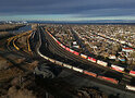 | Grain loads from Swift Current, Saskatchewan pull through a clear alley in CPKC's Westfort Yard and will double over their 140 loads bound for the Superior Elevator to be transferred onto ships. Meanwhile Montreal to Edmonton train 119 pulls to the top end of the yard on the north track to fuel and tag before continuing west. Over the years industries have come and gone and this once busier yard now mostly sits quiet. Things can get busy quickly when potash, coal, and endless amounts of grain from the Prairies arrive and depart from the Lakehead. |