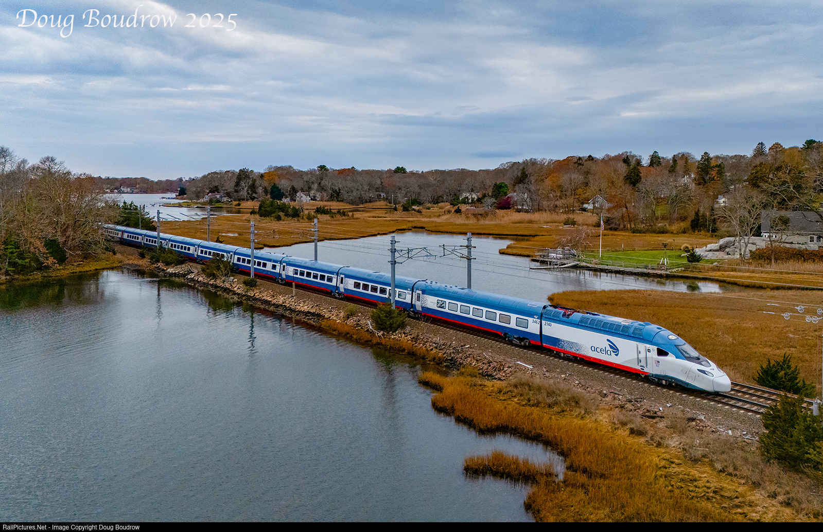 | Amtrak Acela 2248 is seen approaching Mystic on a gloomy Sunday afternoon in November. The Alstom Avelia Liberty sets are slowly entering service after several setbacks. |