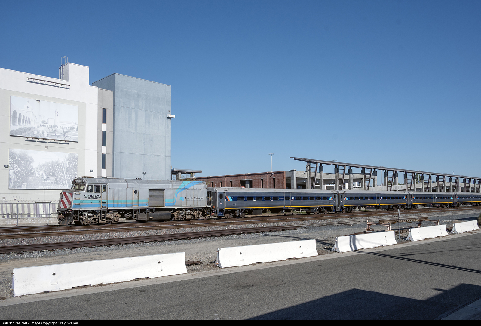 And that shortage of cars results in a small fleet of former NJ Transit Comet coaches to be placed in service, as evidenced by Surfliner 573 departing the Fullerton Transportation Center (what we used to call a "train station") as it heads to its final stop at Los Angeles Union Station. Running nine minutes behind schedule, this train is led by Non-Powered Control Unit 90225 (the former Amtrak F40PH 225, since converted to this unpowered cab car – note the lack of fans on its roof – with a baggage compartment), named "Sacramento" and painted in the scheme used at one time by the CalTrain commuter trains operating between San Francisco and San Jose. Passengers are riding in seven cars: CDTX 5001 "The Comet", CDTX 5004 "The Owl", CDTX 5012 "The Feather River Express", CDTX 5005 "The Senator", CDTX 5010 "The Golden Gate", CDTX 5002 "The Meteor", and CDTX 5006 "The El Dorado" – with CDTX Siemens SC-44 2120 (built here in the Golden State!) shoving on the rear. As this train is all coaches, there is no food service as a result. But as this equipment is only on trains operating between San Diego and Los Angeles (128-miles, or 206 km), that's not as large an issue as on the trains running between San Diego and Goleta (near Santa Barbara) or San Luis Obispo.