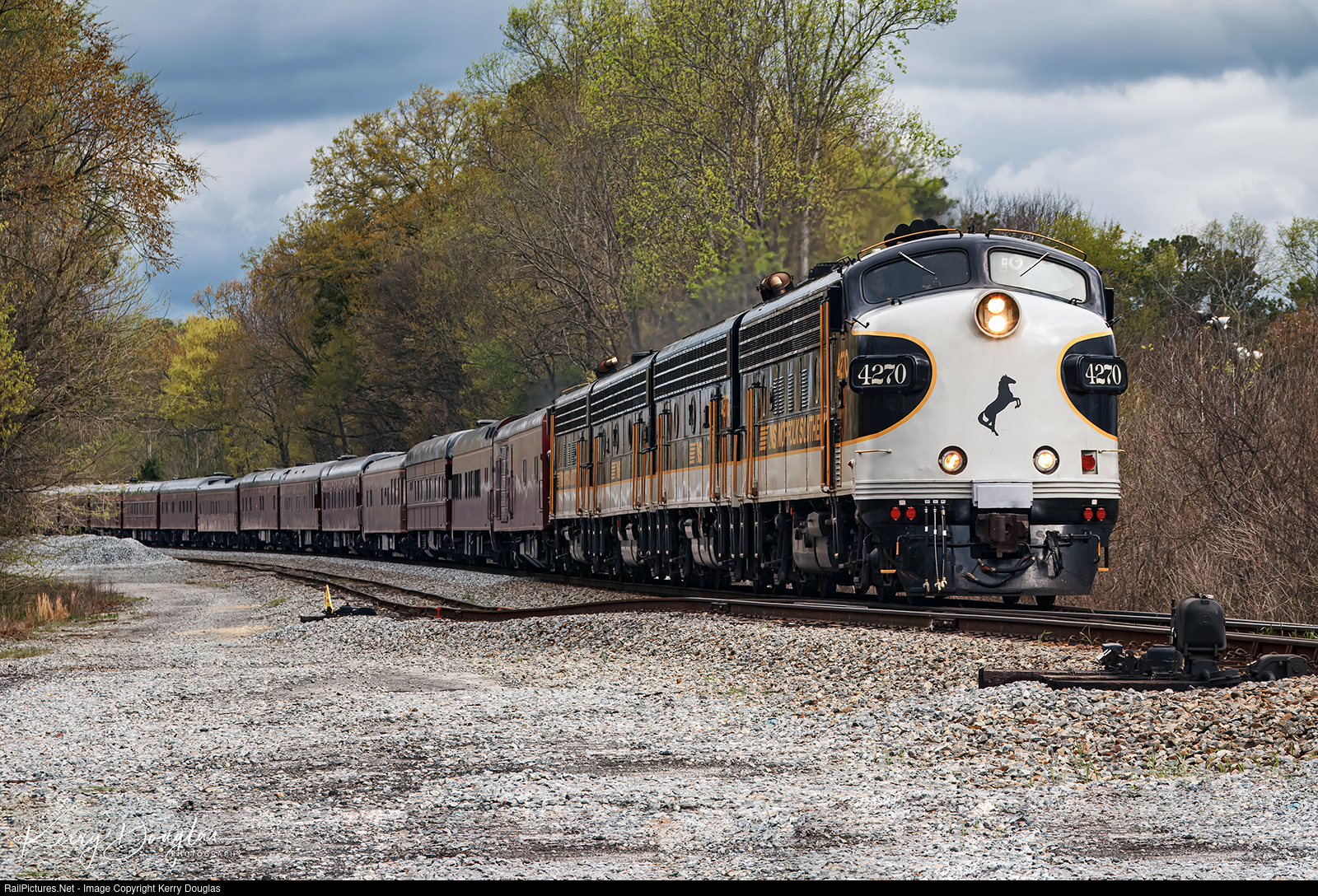 | After passing Ooltewah and starting on the NS Atlanta North-End, NS 955 (Altoona,PA-Augusta,GA) is coasting downgrade with the quartet of the company show ponies and the full train loaded with the company executives and their families heading to the 2017 edition of the PGA Masters Tournament in Augusta, GA. The day prior had the train heading south out of the City of Cincinnati with Cincinnati Officials on board completing the full inspection of the CNO&TP to Chattanooga with the days trip ending in at the Tennessee Valley Railroad Museum on a schedule layover. |