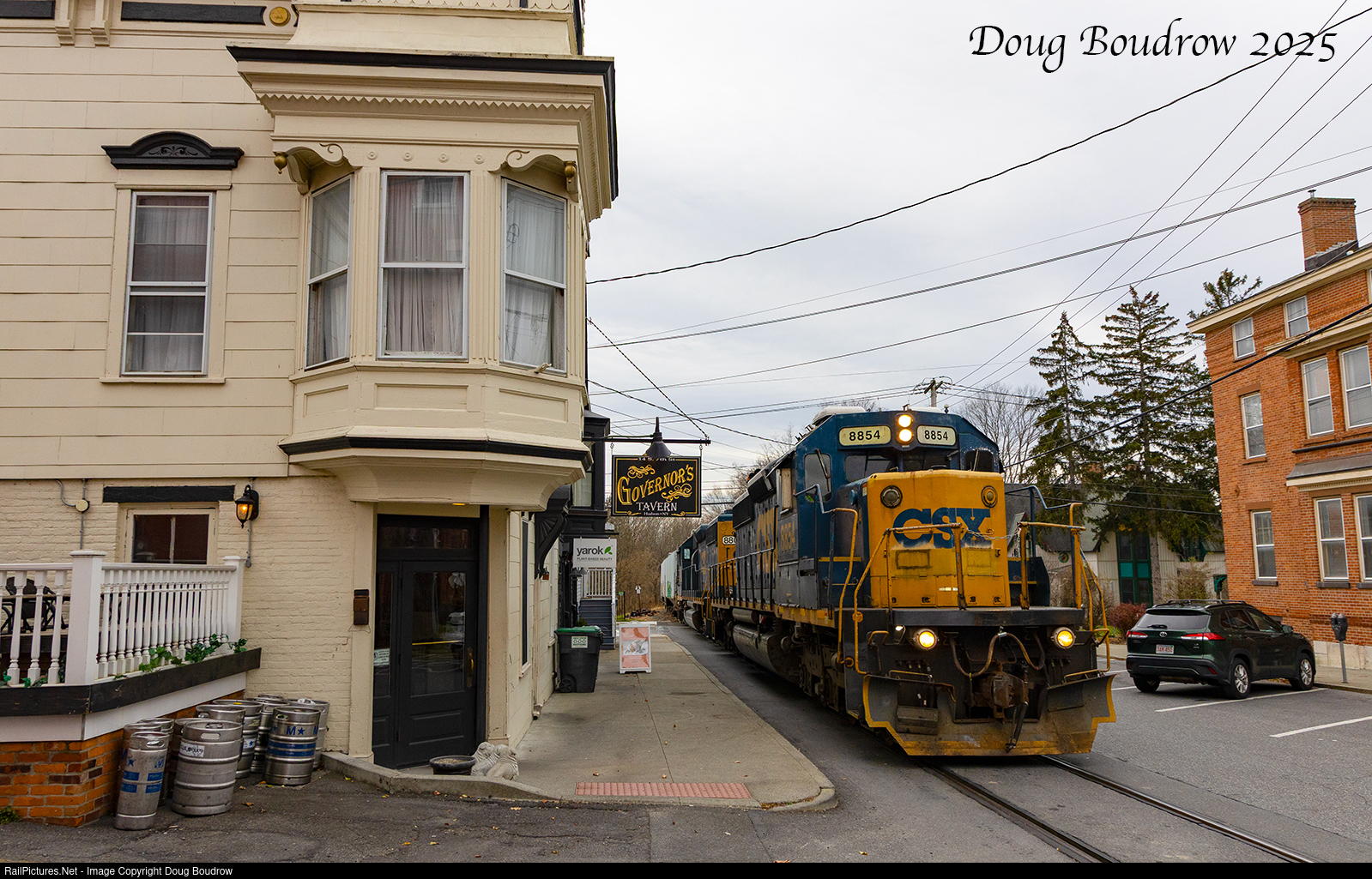| CSX Local L022 is seen heading to ADM Milling with 7 loads. The crew has split the train in half to get the cuts up the steep grade through town without stalling on the three percent grade. The street running along South 7th street is unarguably the coolest part of the 2.5 mile branch. |