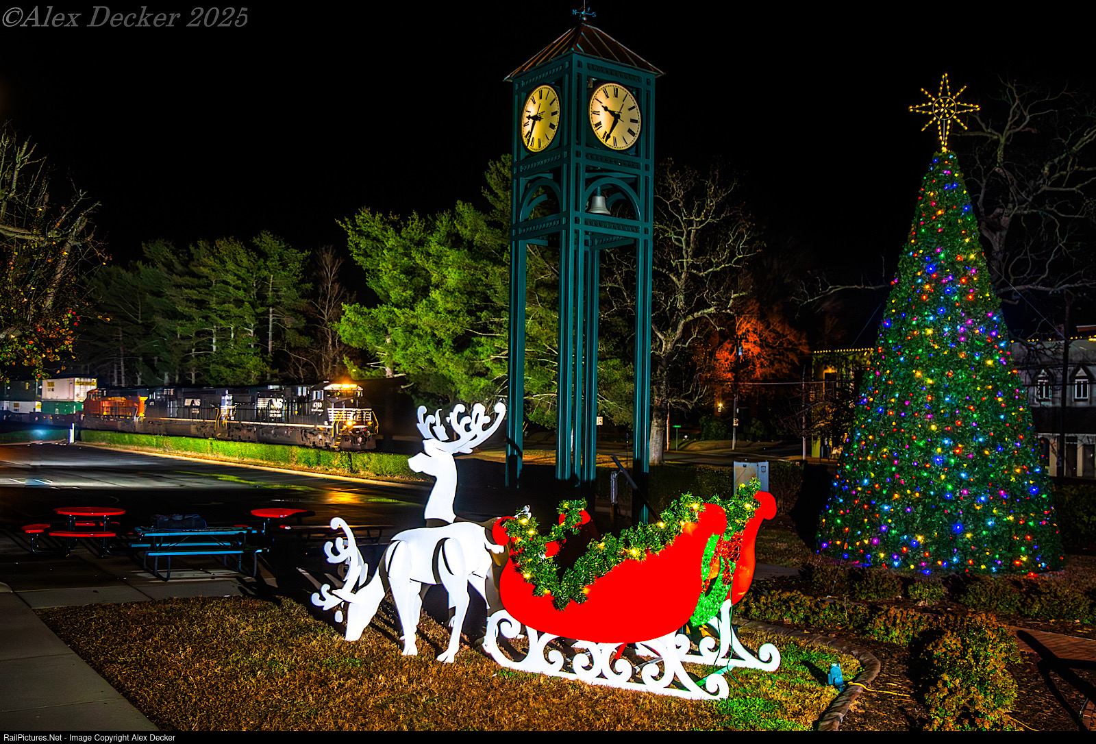 The Arrival of the Holiday Season… With the annual Christmas display lit up and visible for all of the town of Thomasville to see, Josh Lesley and Jeffrey Hurley hustle 25A south through town as they hustle the peak season UPS train towards Linwood.