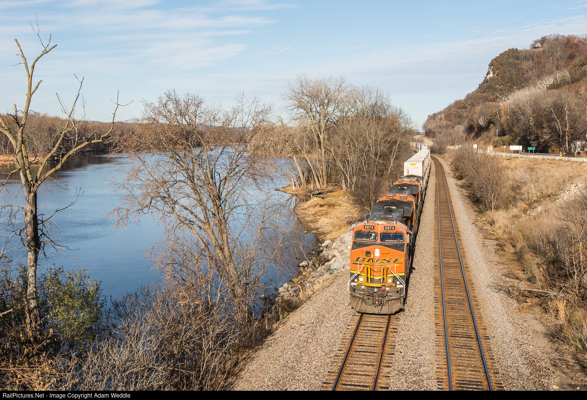 RailPictures.Net Photo: BNSF 6974 BNSF Railway GE ES44C4 at Ferryville, Wisconsin by Adam Weddle
