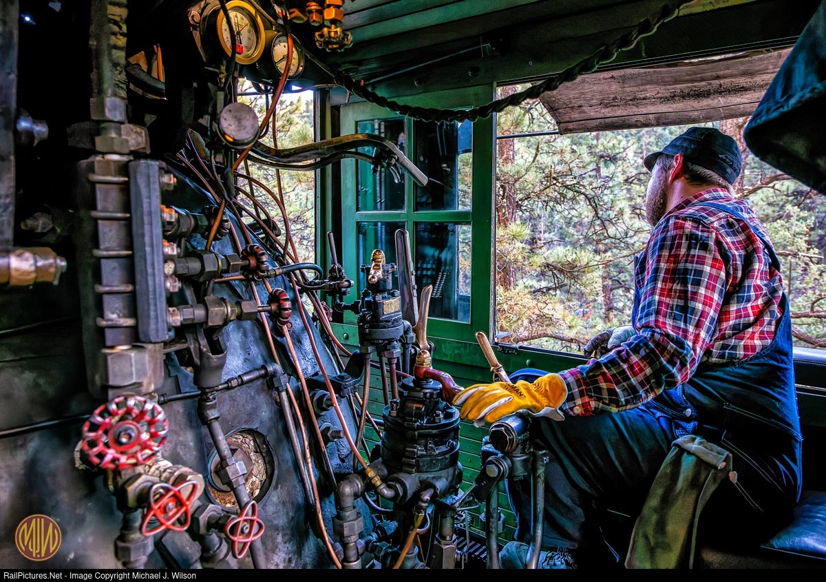 | Engineer Bobby Barnes feathers the automatic train brake on D&RGW K-36 #480 on the morning of October 24, 2025. #480, built in 1925, is equipped with a Westinghouse 6-ET brake system. |